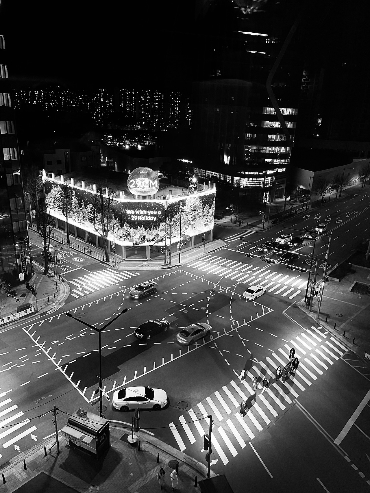 시끄러운 지상철, 구르는 낙엽, 행인.