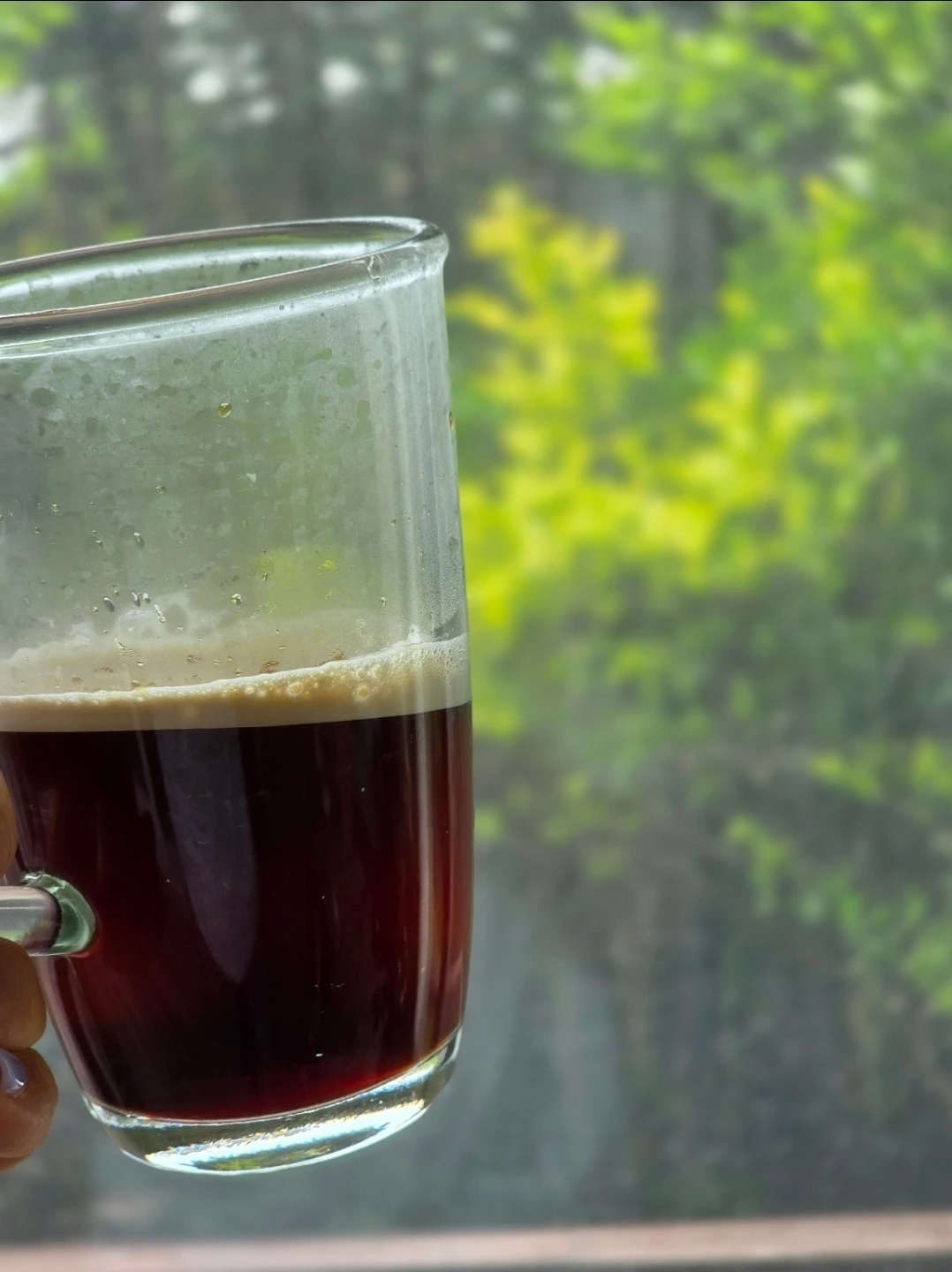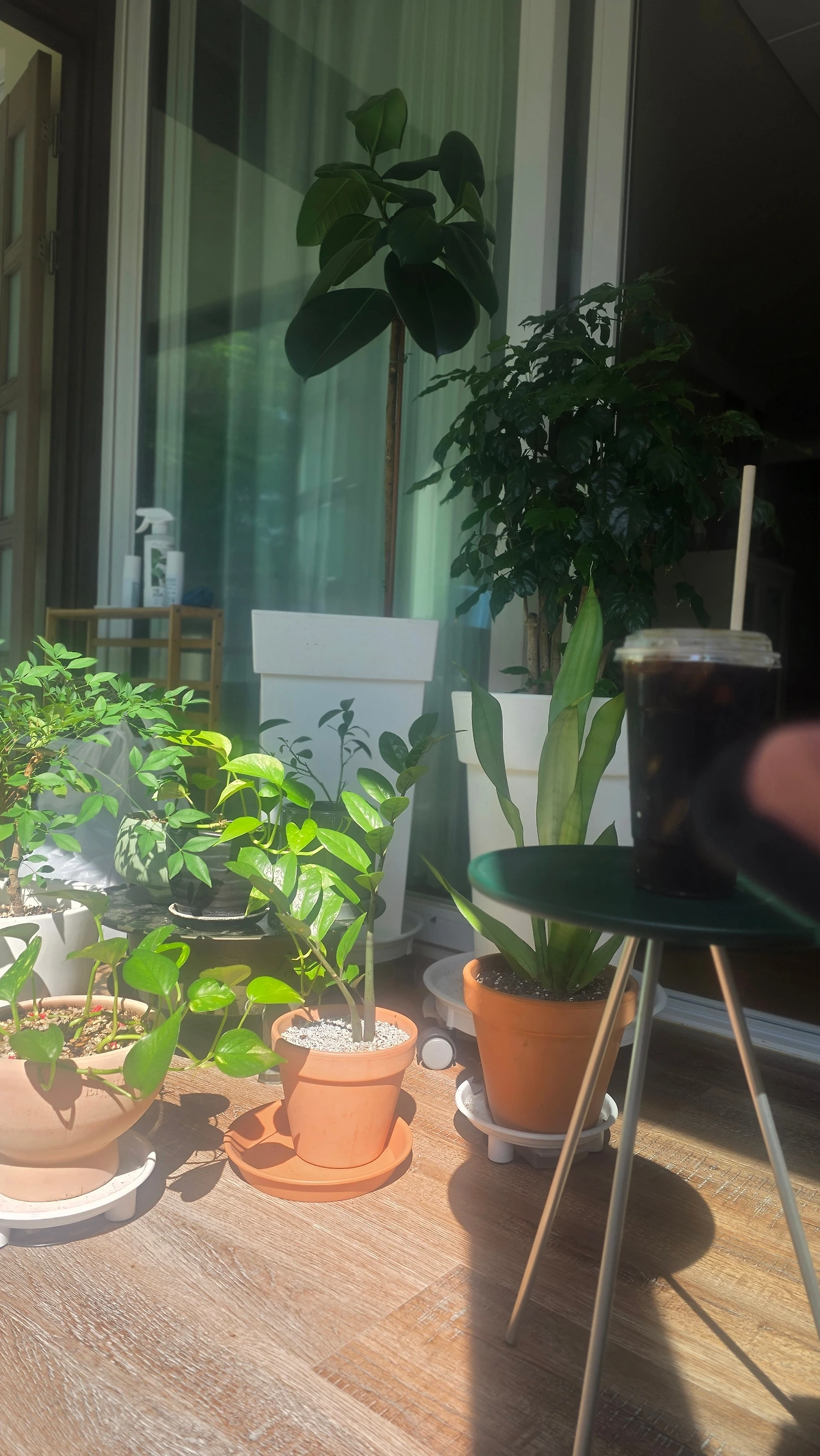 간절한 커피 생각에 캡슐 하나를 내려 테라스 창가에 앉았다.