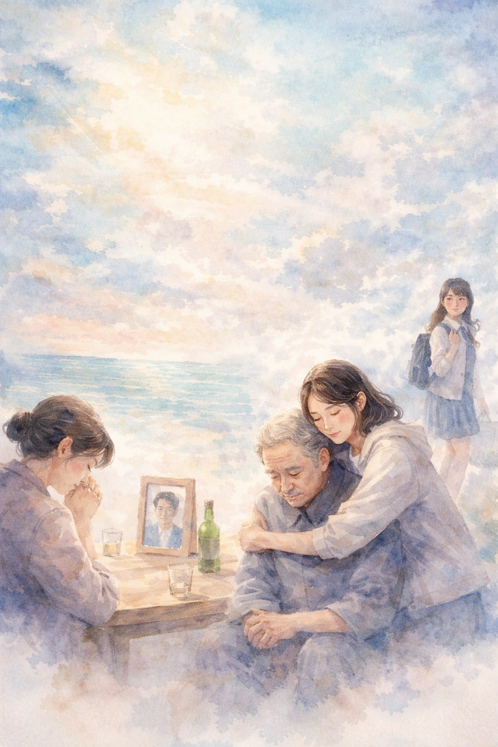 찬 의자에 앉아 딸을 기다리던 어깨,