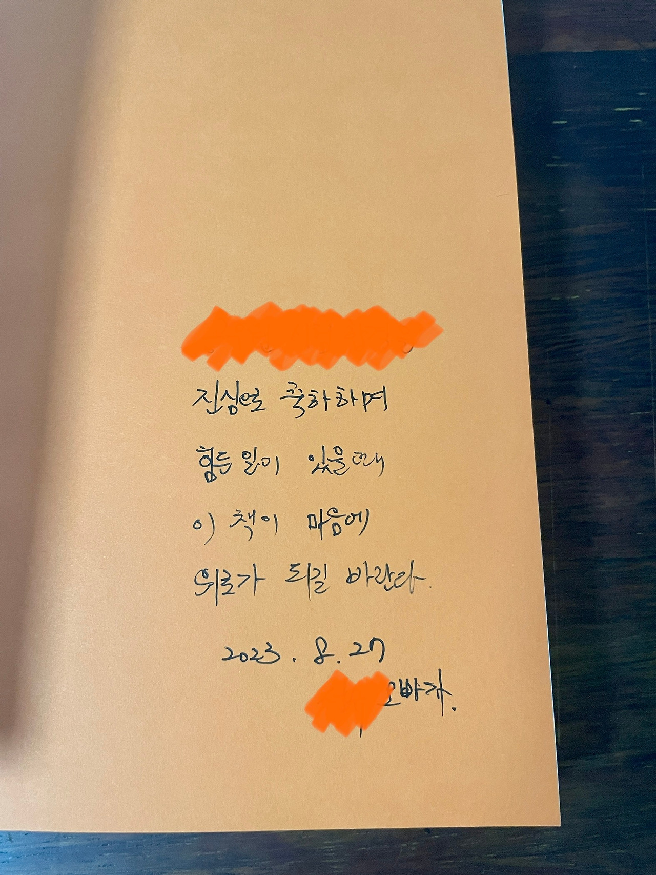 오늘 친척오빠가 취직을 축하한다며 우리 집에 찾아와 책 한 권을 선물로 주었다 처음이었다 누군가에게 책을 선물로 받은 것은 내가 누군가에게 책을 선물한 적은 있어도 받은 적은 없었기 때문이다 친구들한테도 보통 책보다는 먹을거나 화장품 같은 것만 받았지 책을 선물로 받은 적은 없었다 물론 친구들이 책을 읽는 것을 별로 안 좋아해서 그런 거일 수도 있을 것 같다 나는 좋아하지만