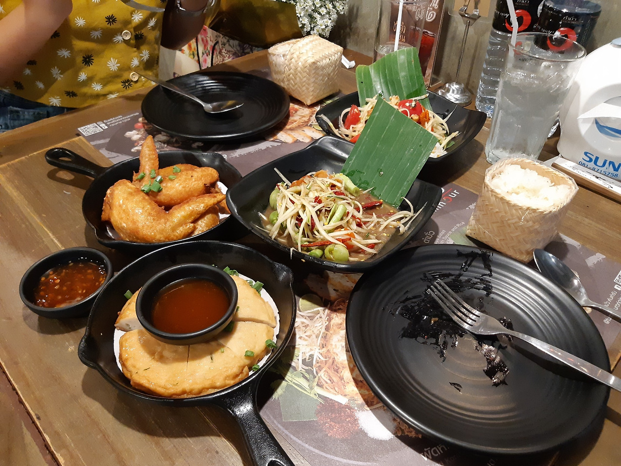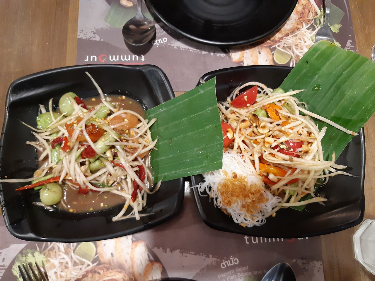 왼쪽은 쏨땀, 오른쪽은 그외 여러 가지. W는 태국인이지만 쏨땀을 좋아하지 않는다. 내가 한국인이지만 김치를 좋아하지 않는 것 처럼.