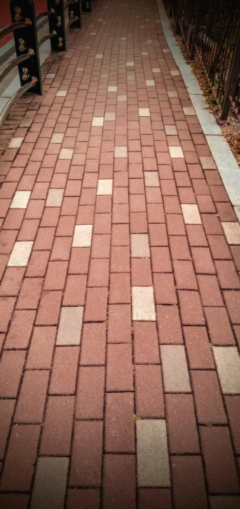 그렇다면 이건 디자인이다. 시공하시는 분의 임의의 패턴 작업이었을 것으로 추측된다. 그분은 이곳을 시공할 때 나처럼 흰 블록 밟기를 하는 사람이 있을 거라는 생각을 염두하면서 벽돌을 끼워 넣었을까? 그렇지 않다 해도 신기한 일인데 설마 그렇다면 얼마나 놀라운 일인가!!!! 나는 천재 디자이너의 패턴에 항상 도전하는 것이다.