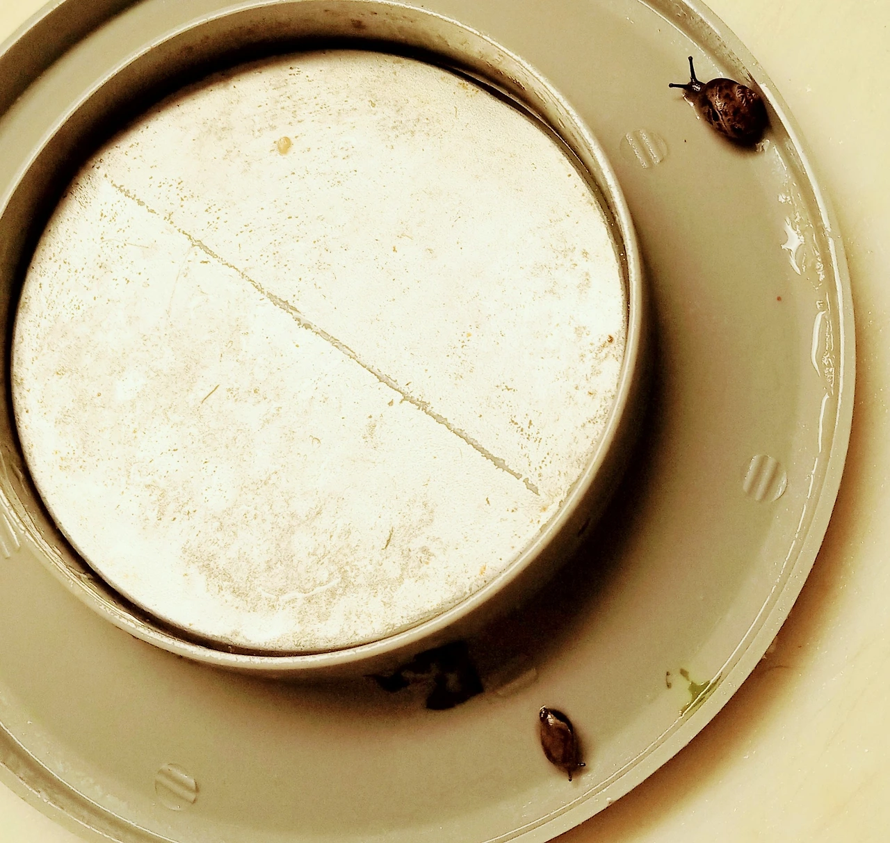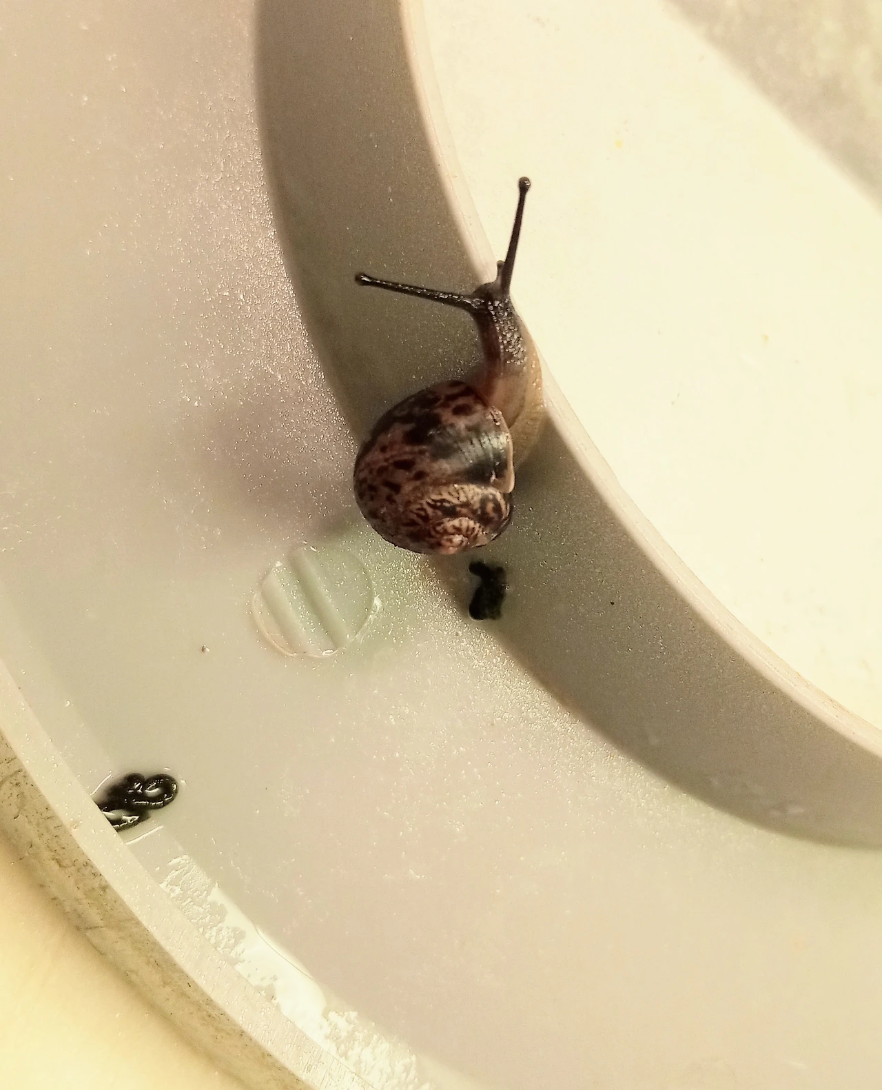 뚜껑에 달팽이가 붙어있는 게 아닌가. 아... 깜놀...