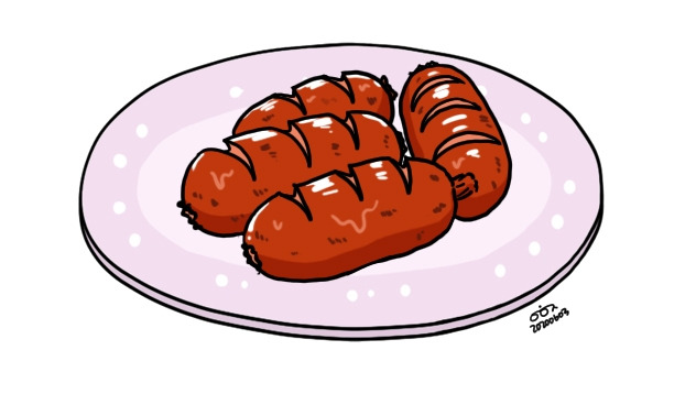 이건 자주 싸주시지 않았다. 우리 집이 부자도 아니었고 형제도 많았기 때문이다. (엄마는 세 명의 도시락을 준비해야 했다.) 칼집은 꼭 세 줄로만 그어져 있다. 그리고 그게 보이도록 도시락에 담아놓으셨다. 도시락 반찬을 열었을 때 이 녀석을 발견하면 그 기분은 이루 말할 수 없는 것이다. 이걸 친구들에게 뺏기고 싶지 않았다. 그러니 몰래 먹을 수밖에.... 어쩌다가 연결이 끊어지지 않은, 그야말로 줄줄이 비엔나가 들어있으면 그날은 그냥 좋은 날이 된다. 아, 줄줄이 비엔나!
