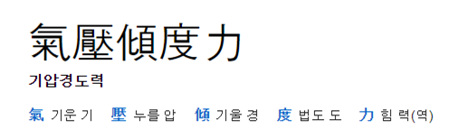 만일 이 글을 빠르게 대충 읽으면 어떻게 될까? 고기압이니 저기압이니 이런저런 이야기가 보이고, 마지막에는 ‘기압경도력’이라는 어려운 말이 나와서 헷갈리게 만들 수 있다. 하지만 다시 천천히 되새기면서 읽어보면 기압경도력이 한자로 어떤 의미인지 알 수 없더라도 충분히 유추해낼 수 있다. 밑줄 친 부분을 다시 읽어보면 결국에는 기압이 한쪽으로 기울어져 작용하는 힘이라는 걸 알 수 있다. 실제 한자어는 아래와 같이 풀 수 있다.