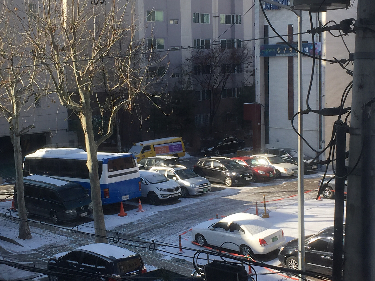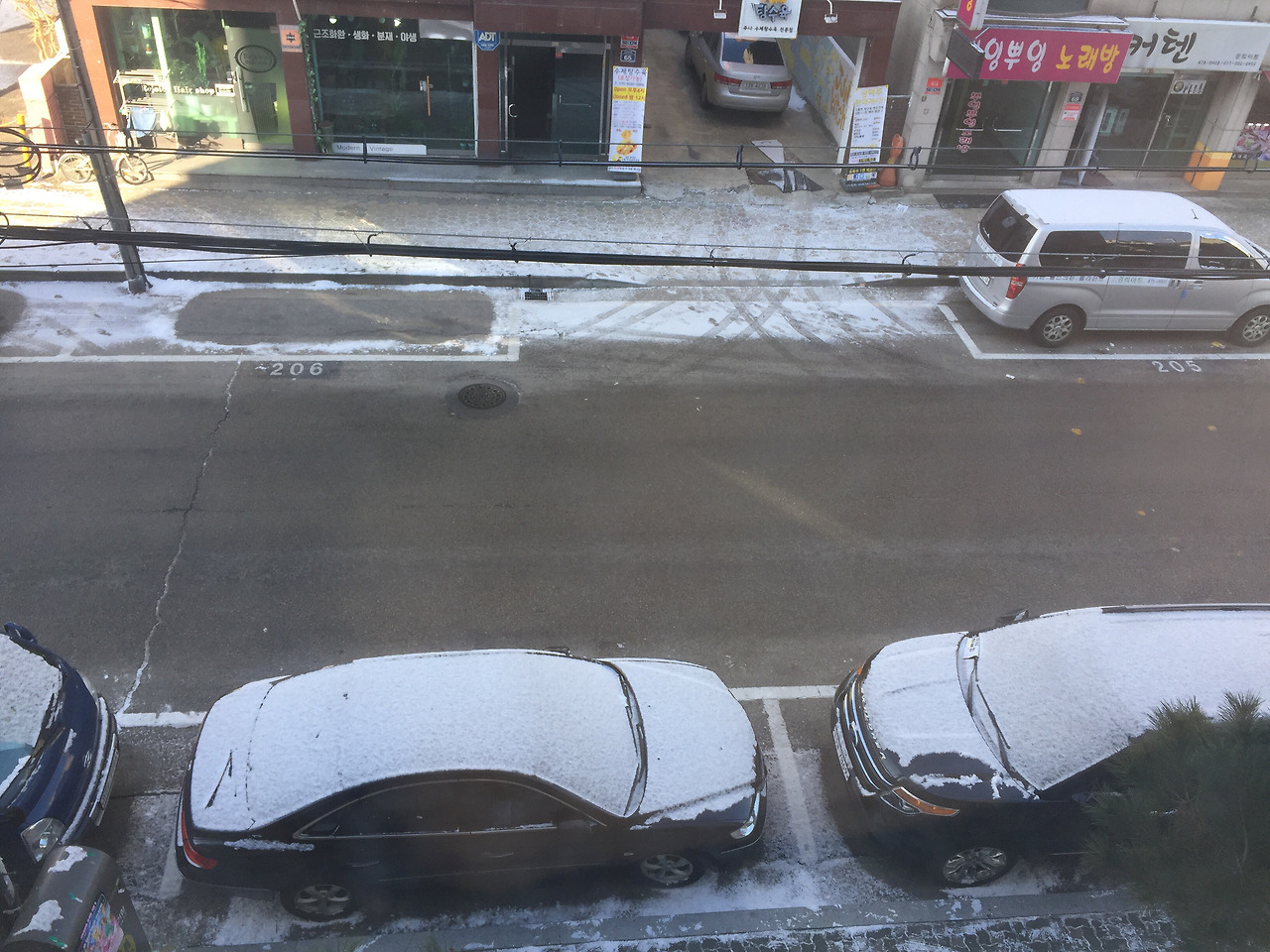 나가기 귀찮을땐 집 베란다가 최고인것 같습니다. 베란다에서 거주지우선 주차구역에 주차가 되어있는 차량들 위에 쌓인 눈을 직어봤습니다.