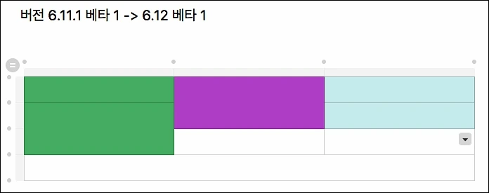 6.12 베타 1 으로 업데이트 하기 전에 기존에 사용중이던 6.11 베타 1 버전에서 표를 만들어봤습니다. 그리고 업데이트를 하고 그 표를 새로운 버전에서 불러와봤습니다. 아직은 크게 변화되거나 개선된 부분을 모르겠습니다.