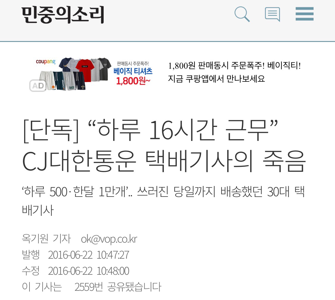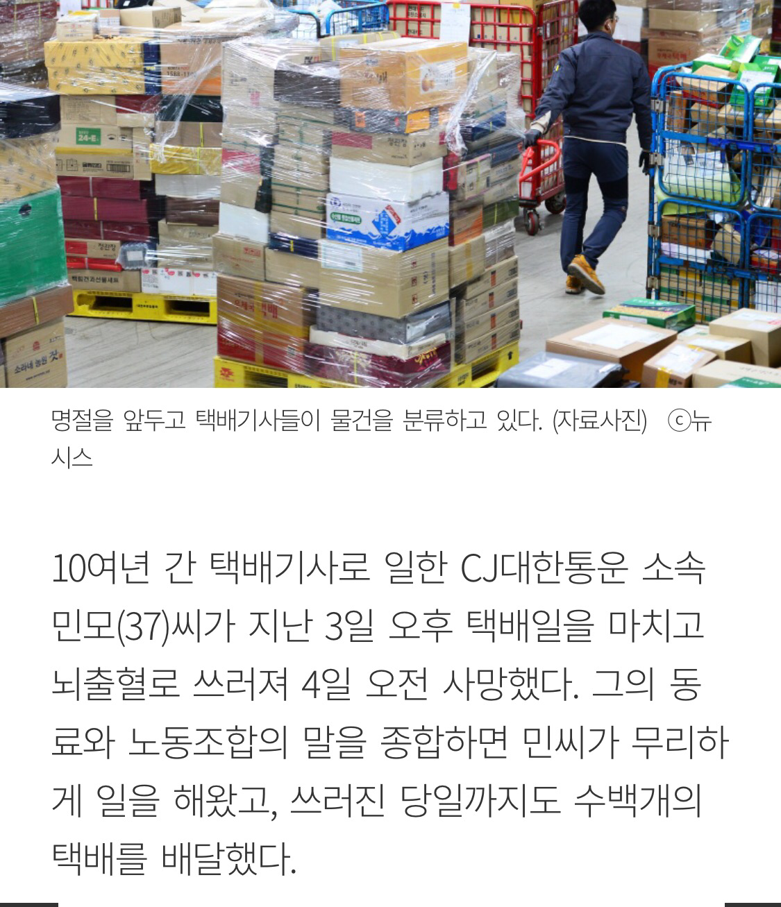 물론 아래 기사를 읽어보면 일반적인 택배기사보다 유독 본인이 일을 많이 한 측면도 있는 것 같다.