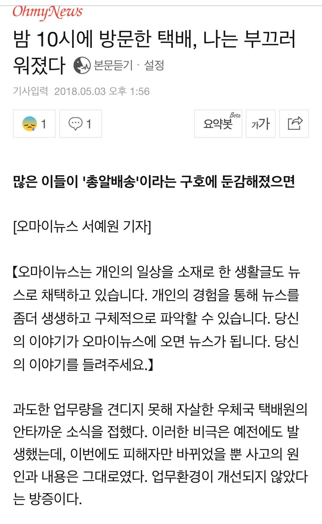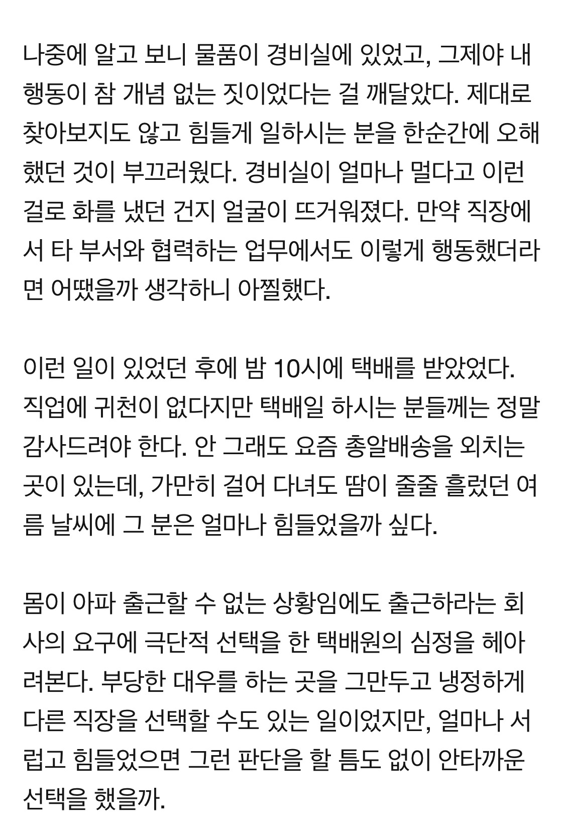 택배 총알배송 노동자는 온전하신가요