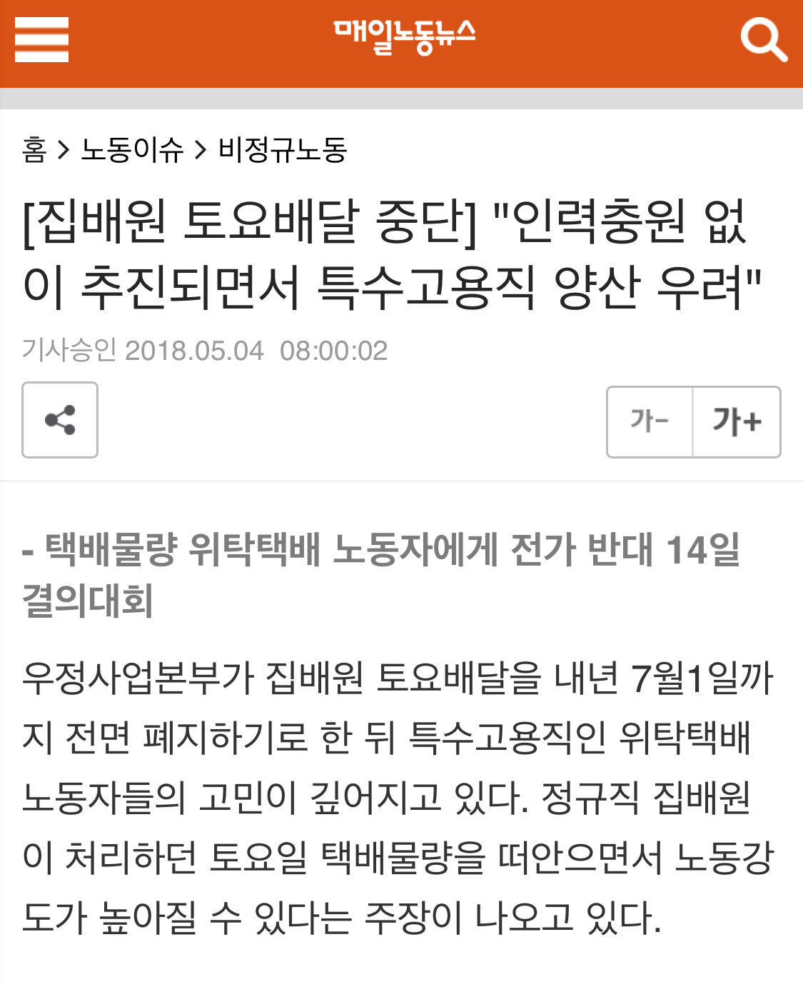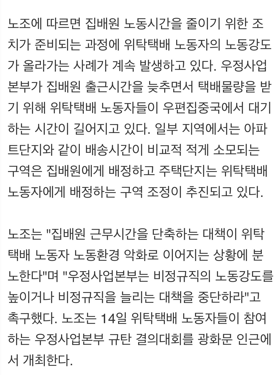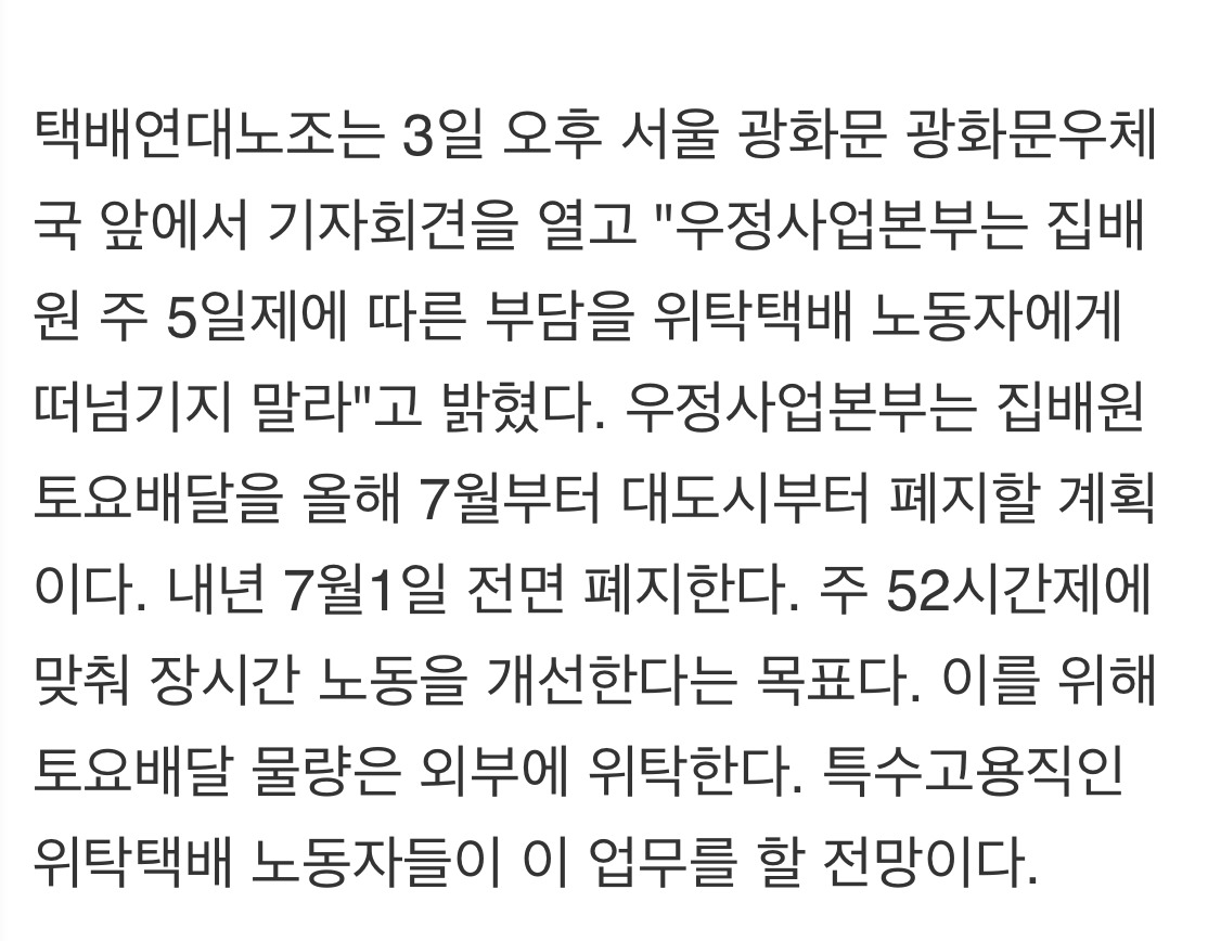 위탁배달원을 쥐어짜는 우체국의 횡포