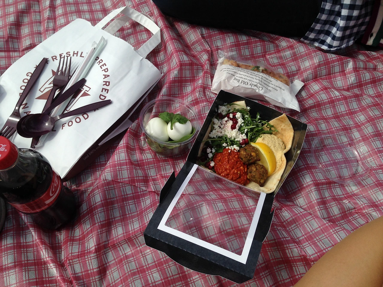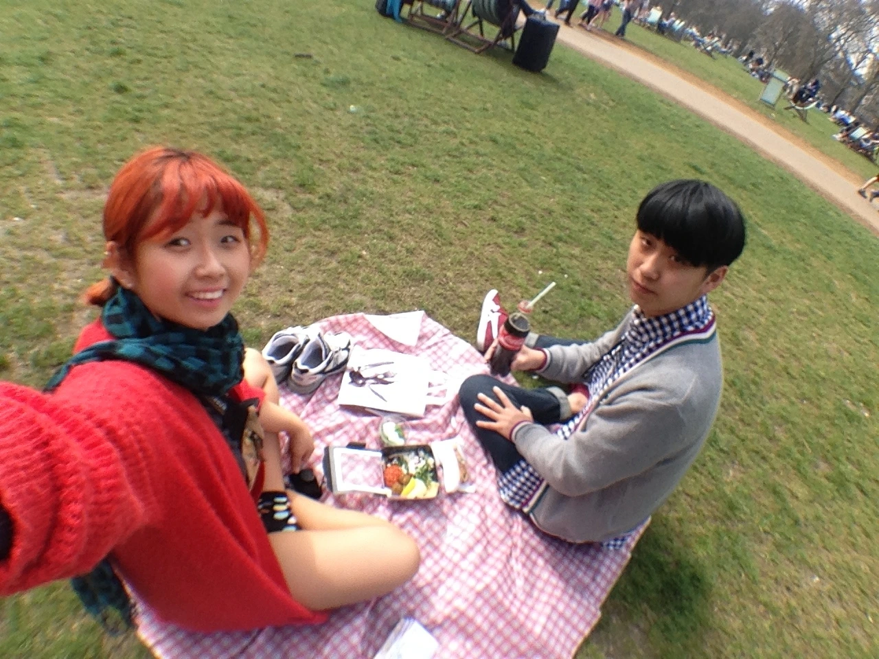우리는 사람들이 다소 적은 곳에 자리를 잡았다. 근처 음식점에서 산 도시락과 음료수, 좋아하는 음악도 틀어놓고 식사를 했다. "여기 음식은 참 맛이 없다"고 아까워서 우적우적 먹었다. 동양인이라곤 우리둘뿐이었다. 지나가는 사람들이 우리를 다들 쳐다봤다. 다들 우릴 보고 환한 미소와 "헬로우"하는 인사를 했다. 나쁘지 않은 관심이었다.