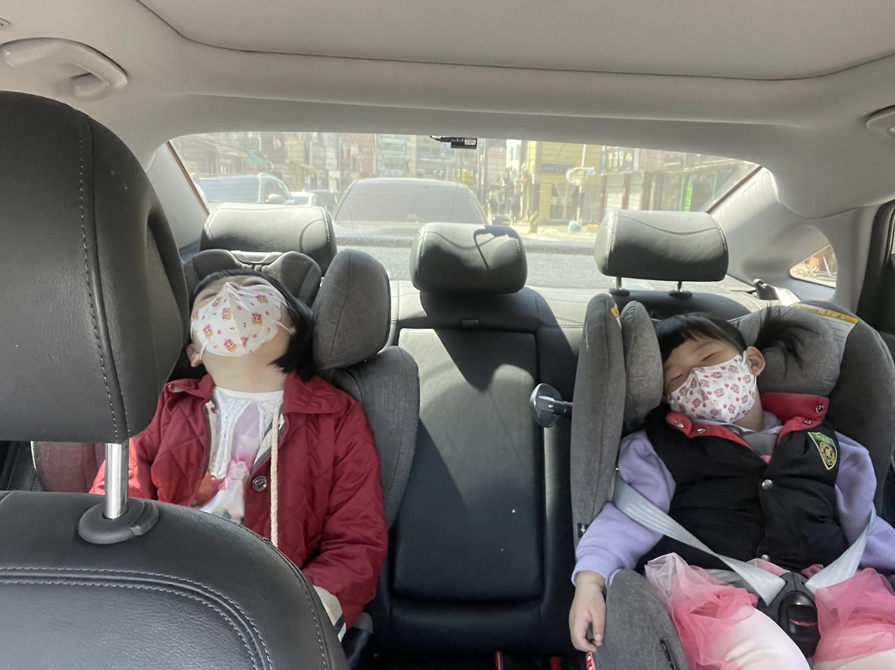 우리 아이들은 별고 없으면 5시 30분에서 6시 사이에 일어나고, 늦잠자도 7시 전에 깬다. 일어나서 실컷 놀고 밥도 먹고 준비를 다 마쳐도 8시가 채 안된다. 내가 일을 그만두고 난 후에도 이 패턴이 아예 정착되어서 두 아이 모두 첫코스로 기관에 간다. 먼저 둘째를 8시 15분-20분쯤 어린이집에 데려다주고 첫째와 차를 타러 간다. 첫째는 첫 코스에 가장 처음으로 탄다. "엄마, 나는 처음으로 맨날 타서 맨날 앞자리에 타서 너무 좋아"라고 한다. 한번은 둘째 병원진료 때문에 마지막 코스를 탔는데, 첫코스때와 달리 타는 아이들이 많으니 아이가 앞자리에 못탔다고 푸념을 늘어놓았다. 그래서 그 다음부터 첫코스만 고집한다.