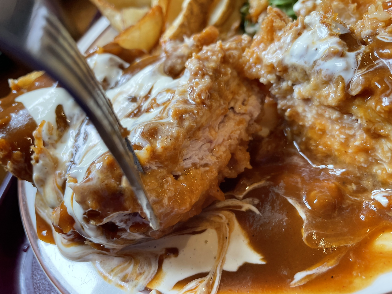돈까스를 그렇게 오래 씹어본건 처음이었다. 고기가 질겨서 오래씹은것이 아니었다. 바삭한 겉면은 잠시, 씹을수록 고소한 돼지고기의 맛과 향, 달콤하고 진한 돈까스소스와 육즙이 어우러지면서 입안 가득 "무척 좋은 고기"를 먹는다는 만족감에 단번에 삼킬 수가 없었다. 한참 씹다가 꿀꺽 삼키니 언니가 그제야 입을 연다 . "뭐야뭐야, 이 돈까스 뭐야? 이게 무슨 돈까스야, 스테이크지!"