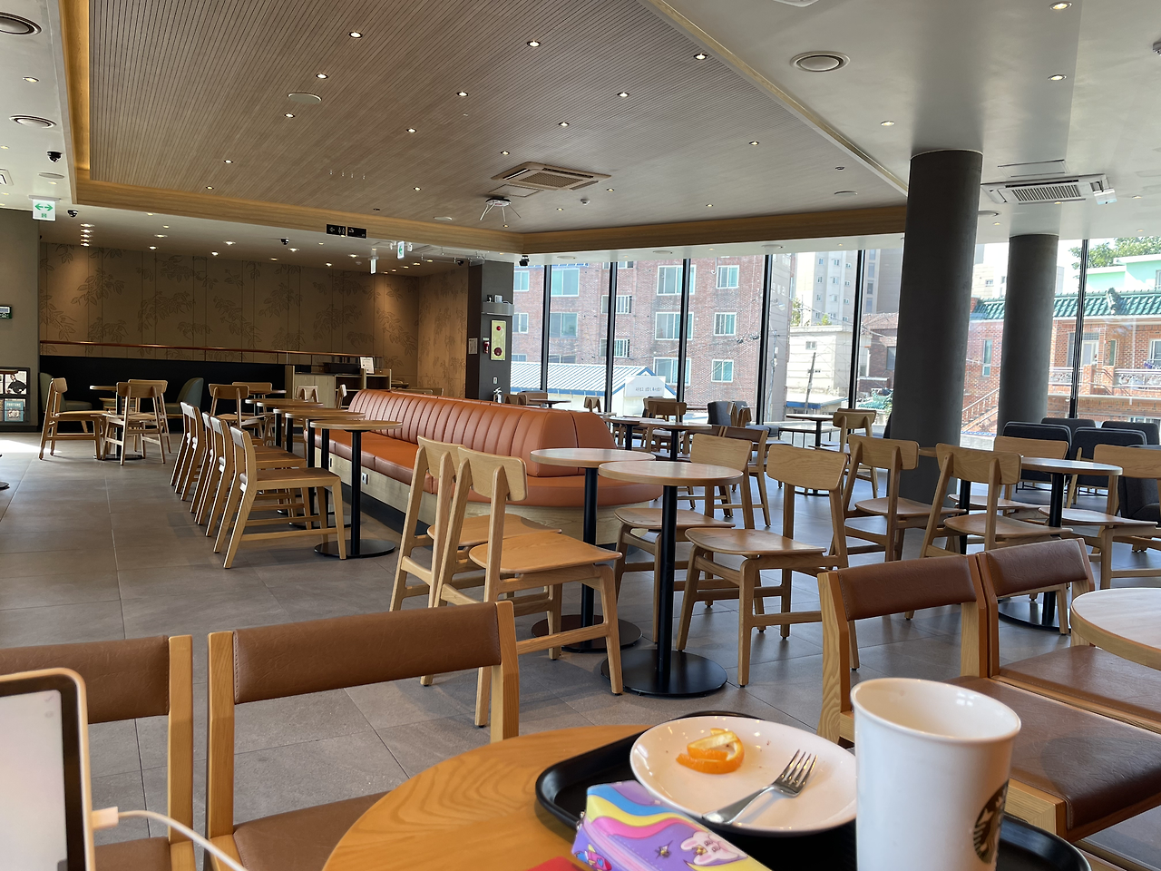 내가 공짜로 자리차지하는것도 아니고, 그렇다고 '전기도둑'마냥 콘센트를 몇개씩 꽂는것도 아니고, 자리를 혼자 몇개씩 차지하는것도 아니고... 저들이 이곳에 앉아 담소를 나누는 대신 나는 업무를 보는거니 괜찮다 하면서도 '혹시나 민폐면 어쩌지' 싶은적이 많았다. 다행히 우리동네 스타벅스는 4좌석, 2좌석 외에도 단체석, 혼자오는 손님을 위한 긴 테이블까지 다양하게 마련되어 있어서 딱 1,2인석에 앉아 있으니 나도 자리차지 걱정 없고, 오는 사람들도 저마다 인원에 맞춰 편히 앉아도 되어 눈치보지 않고 일을 보고 나온다.