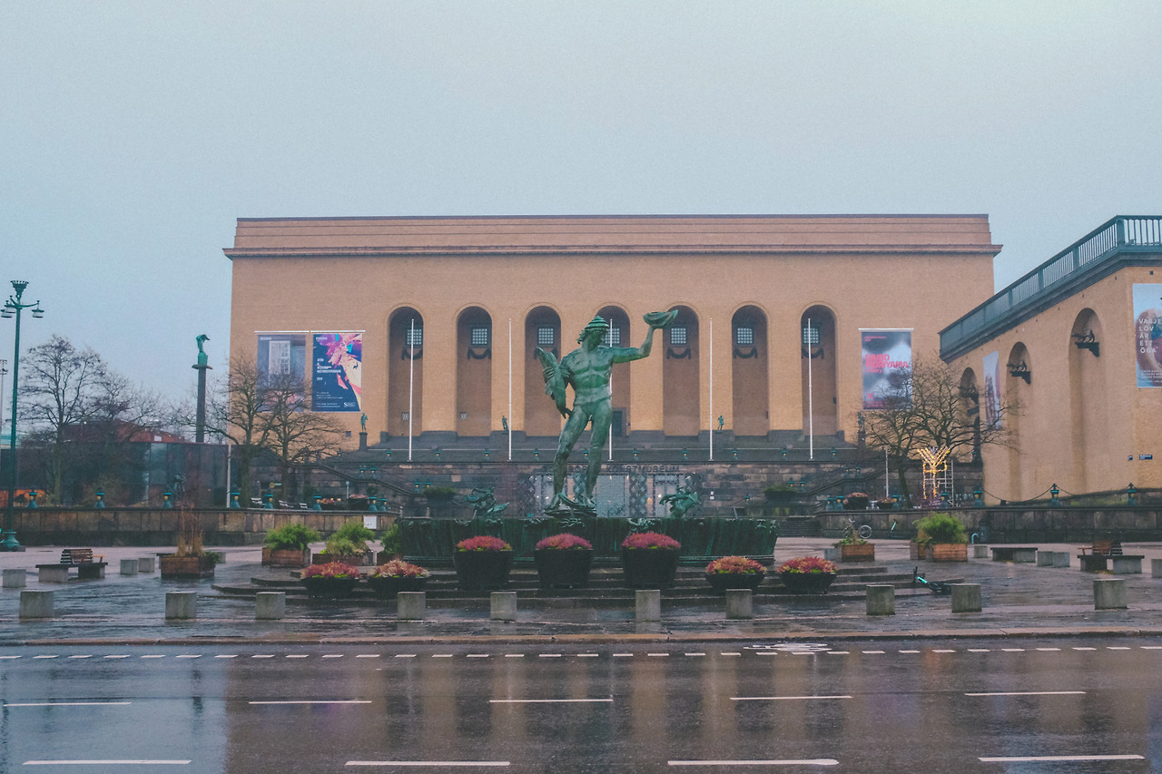 그리고 향한 곳은 예타 광장(Götaplatsen). 그 앞에는 칼 밀레스의 작품, 포세이돈 동상이 있다. 바다와 맞닿은 도시인 까닭에 바다의 신이 자리잡고 있다고 한다. 그리스 로마 신화와 가까운 사람은 아님에도 불구하고 조각에서는 어떠한 힘을 느낄 수가 있었다. 차들이 지나가지 않는 틈을 타서는 그와 같은 포즈로 사진을 한 장 남겼다.