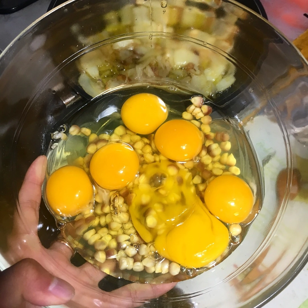 3. 계란 다섯 알과 준비한 재료를 섞어줍니다.