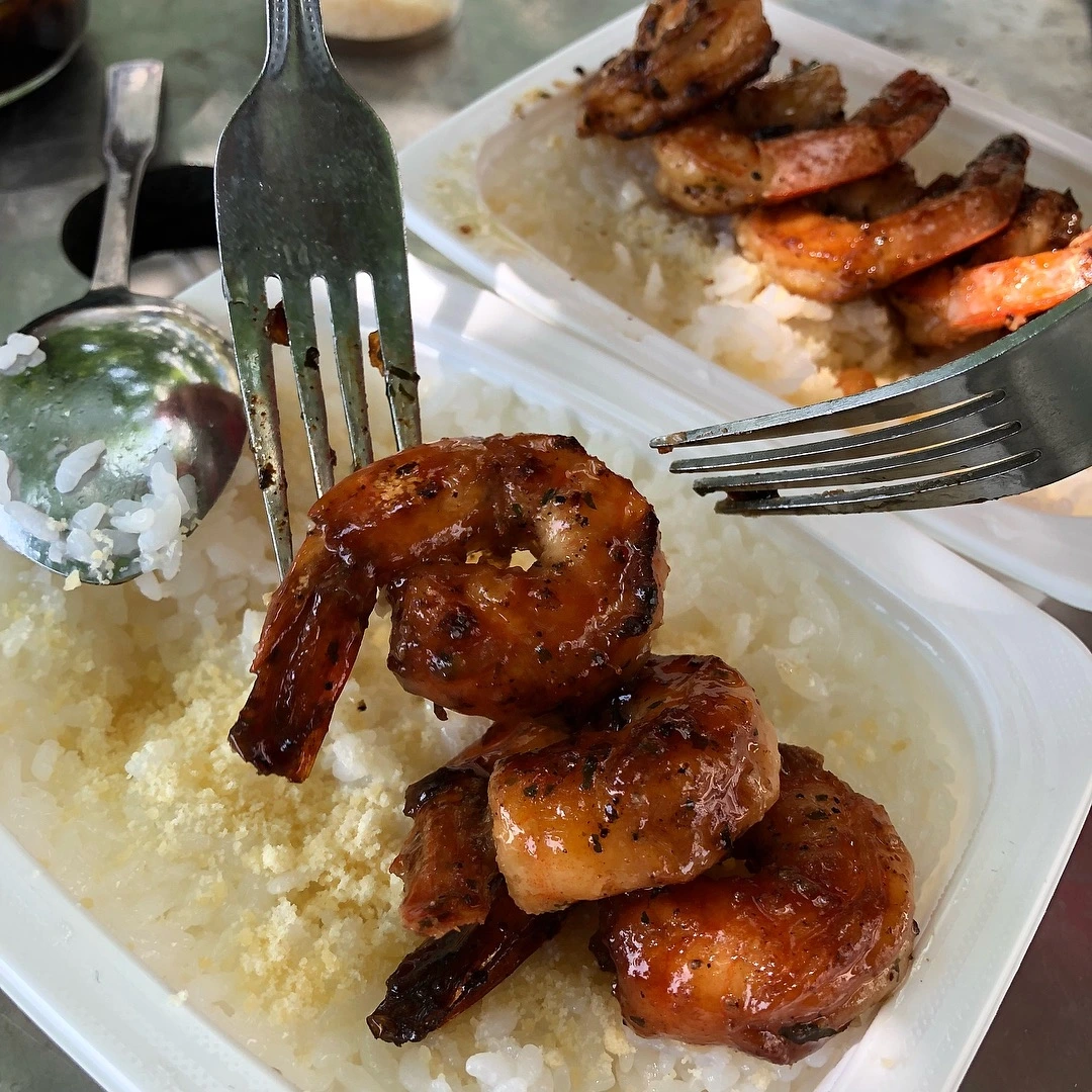 6. 새우와 버터 갈릭 소스 그리고 밥을 섞어서 먹는다.