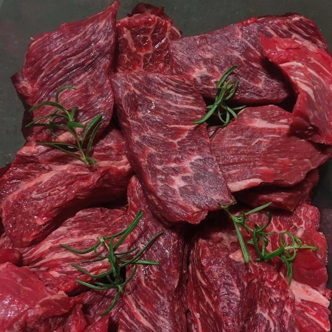 1. 쇠고기를 먹기 좋은 크기로 정형한다. 팬에서 구울 땐 2.5센티 정도가 적당함.