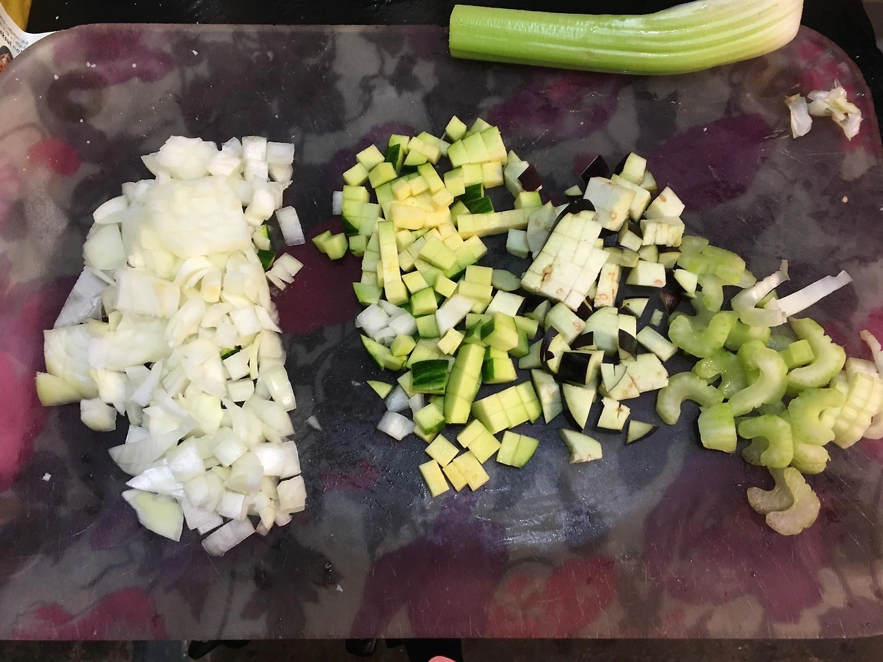 2. 양파, 애호박, 가지, 샐러리를 잘게 썰어준다.