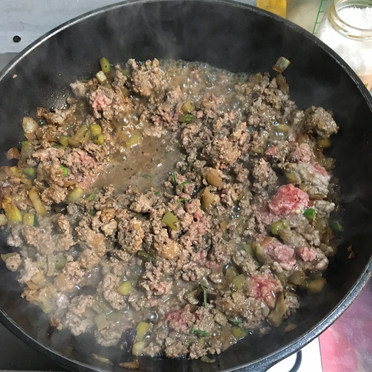 5. 고기가 갈색을 띠면, 와인, 토마토소스를 넣고 끓여준다.