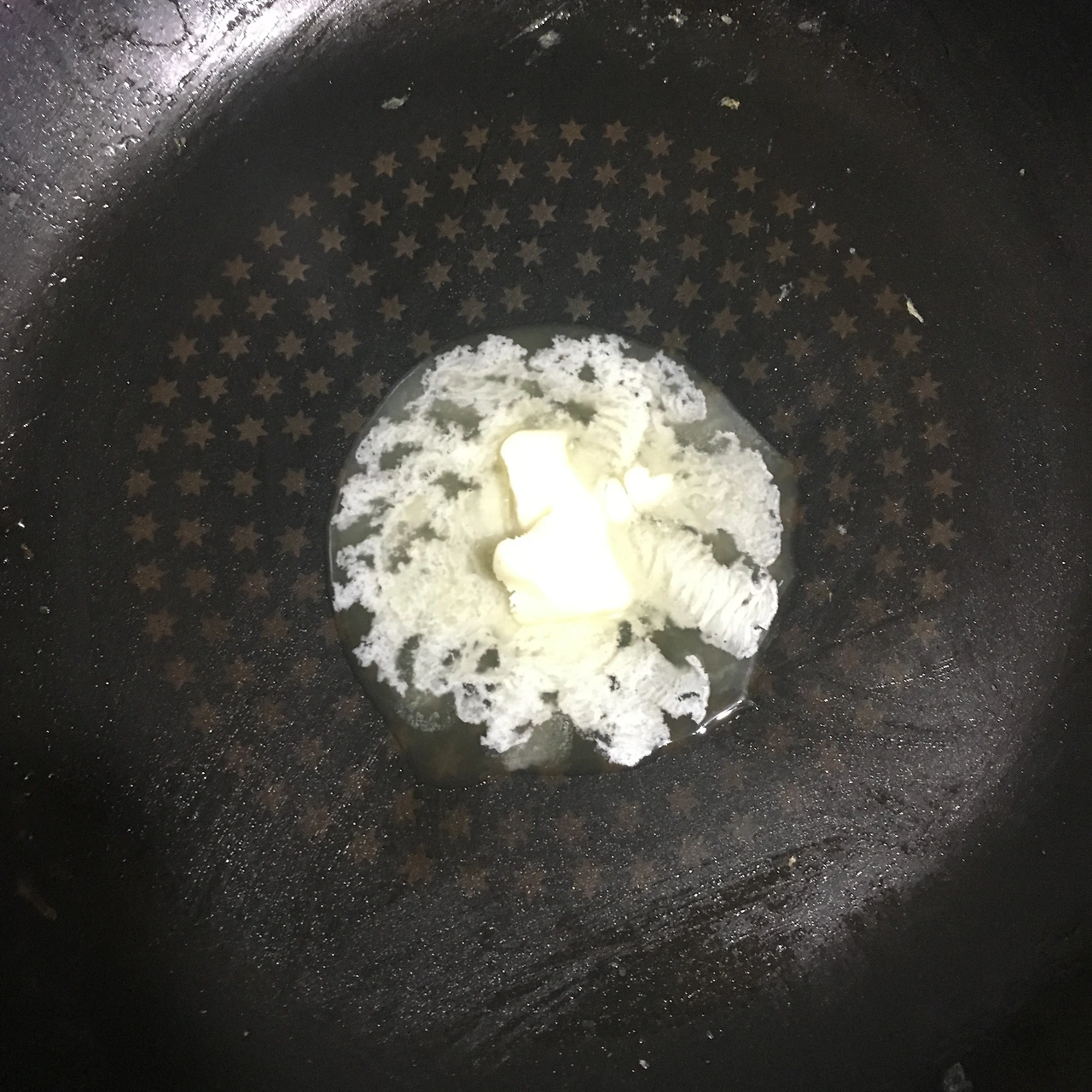 2. 팬에 버터를 올리고 코팅해줍니다.