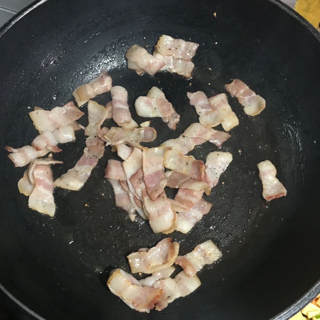 1. 베이컨을 볶습니다(기름이 많기 때문에 기름 x)