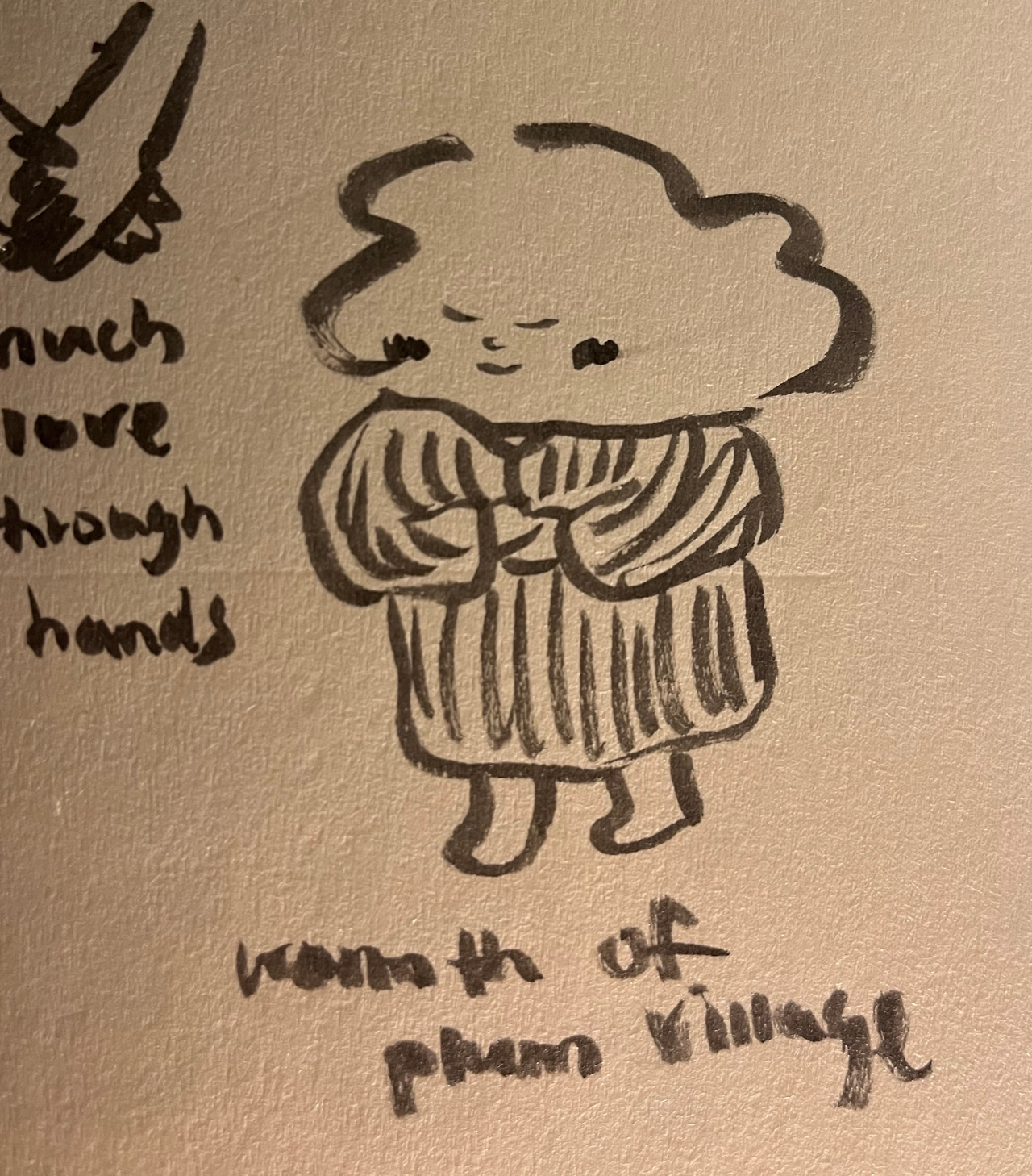 이곳을 기억할 유일한 방법은 있는 동안 열심히 찍고 그리고 쓰는 법 밖에 없다고 생각했는데 이렇게 다른 방식으로 플럼빌리지를 기억할 물건이 생겨버렸다. 스웨터는 보드랍고, 관리가 잘 되어있었고, 시스터들의 따뜻한 포옹 같았다.