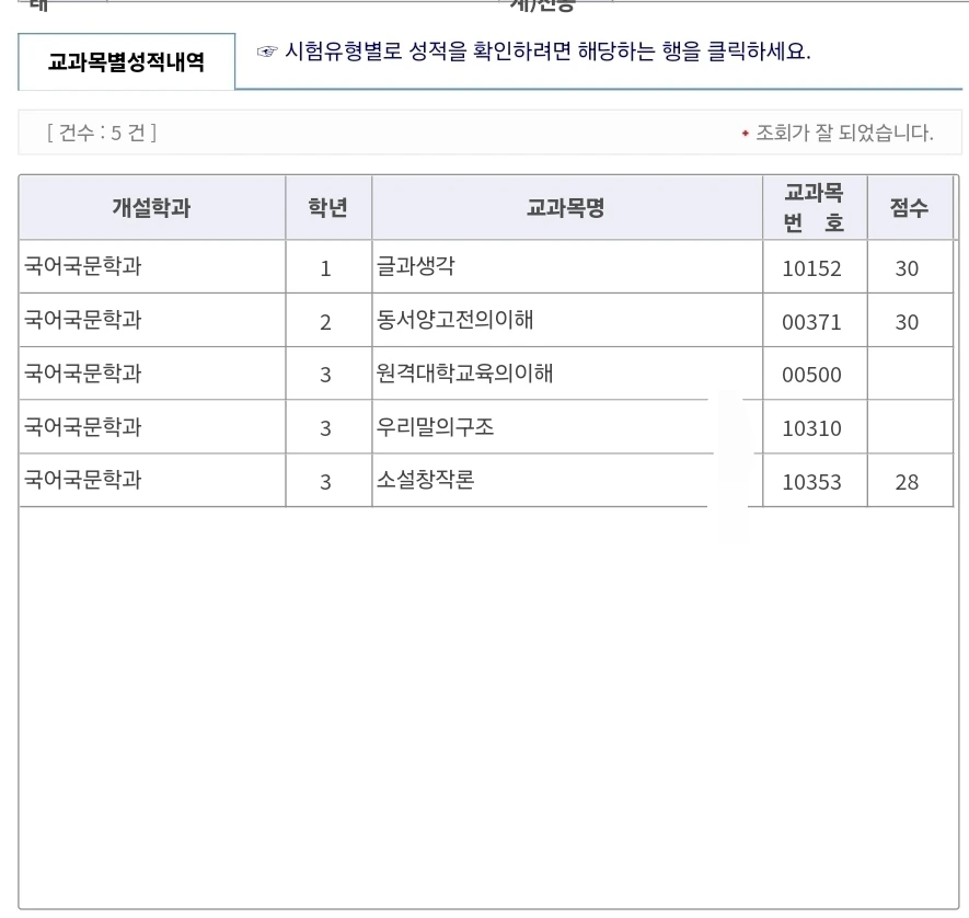 그리고 현재까지 채점완료된 과제 점수 인증이다! 30점 만점인가보다. 소설창작론은... 과제할 때 즐거웠으니 됐어... ㅠㅠ