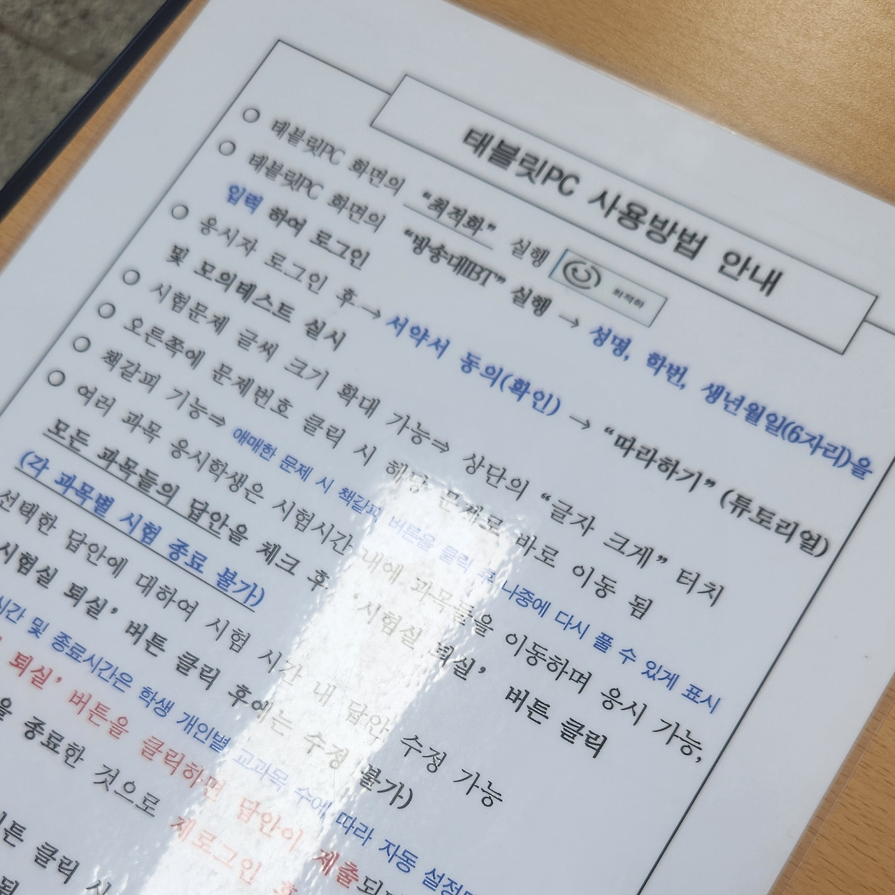 기말 시험은 과목마다 일정이 정해져 있는 것이 아니라 태블릿 PC로 여러 과목을 동시에 평가한다. 시험일정은 4일 정도의 일정 안에서 수강신청하듯이 고르는데, 목금토일 중 토, 일의 늦은 시간대가 가장 인기가 많은 편이다. 방송대는 직장인이 아무래도 많은 편이니까.(우리 과는 거의 내가 유일한 것 같지만) 주말을 선호할 테다. 원하는 시간에 시험을 보기 위해서는 수강신청, 아니 시험 일정 신청 일정을 미리 체크해 두고 늦지 않게 신청해야 한다. 한 일정당 3개 과목까지 볼 수 있는데 참 편리했던 것은 시험 과목 각각 시간이 주어지는 것이 아니라 시험 시간은 과목에 비례해서 한꺼번에 주고 과목을 이리저리 왔다 갔다 하며 풀 수 있다는 점이다.