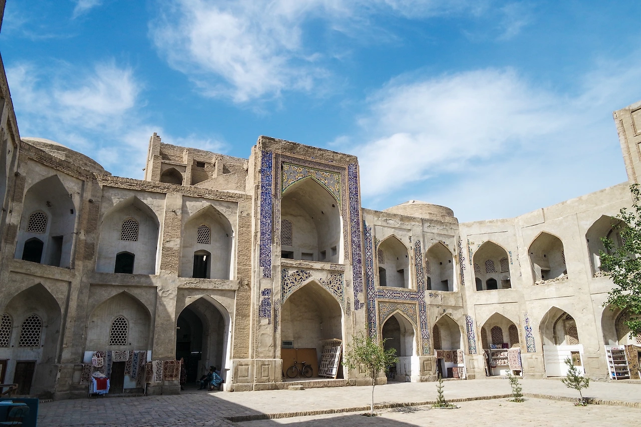 그렇게 타키 텔팍 푸루숀 시장을 지나서 쭉 잘 정비된 길을 올라가니 타키 자르가론과 울룩벡 마드라사 광장이 나왔다. 타키 자르가론 역시 과거에 시장으로 이용되었던 곳(지금은 기념품 상점만 한가득)이고, 울룩벡 마드라사와 맞은편의 압둘아지즈칸 마드라사 역시 과거에는 모두 신학교로 사용되었던 곳이다. 현재는 두 유적 모두 폐허로 남은 상태이다.