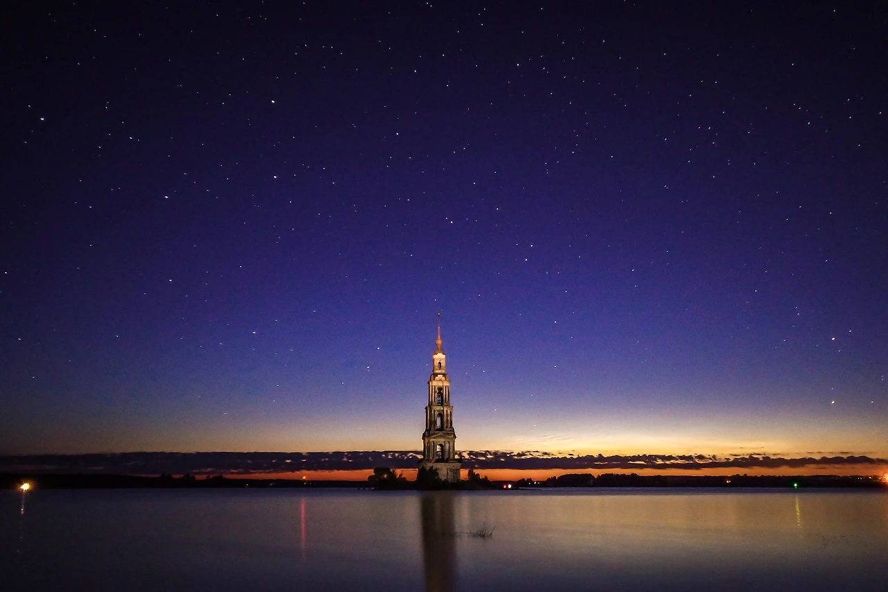 칼랴진은 볼가 강에 인접해 있는 마을인데, 댐을 만들면서 잠겨버린 수도원 종탑으로 유명하다. 낮에는 나룻배를 타고 왔다 갔다 할 수도 있고, 밤에는 그 어떤 건물에도 조명을 켜지 않는 완전한 암흑 속에서 별들을 구경할 수 있는 보석 같은 마을이다!