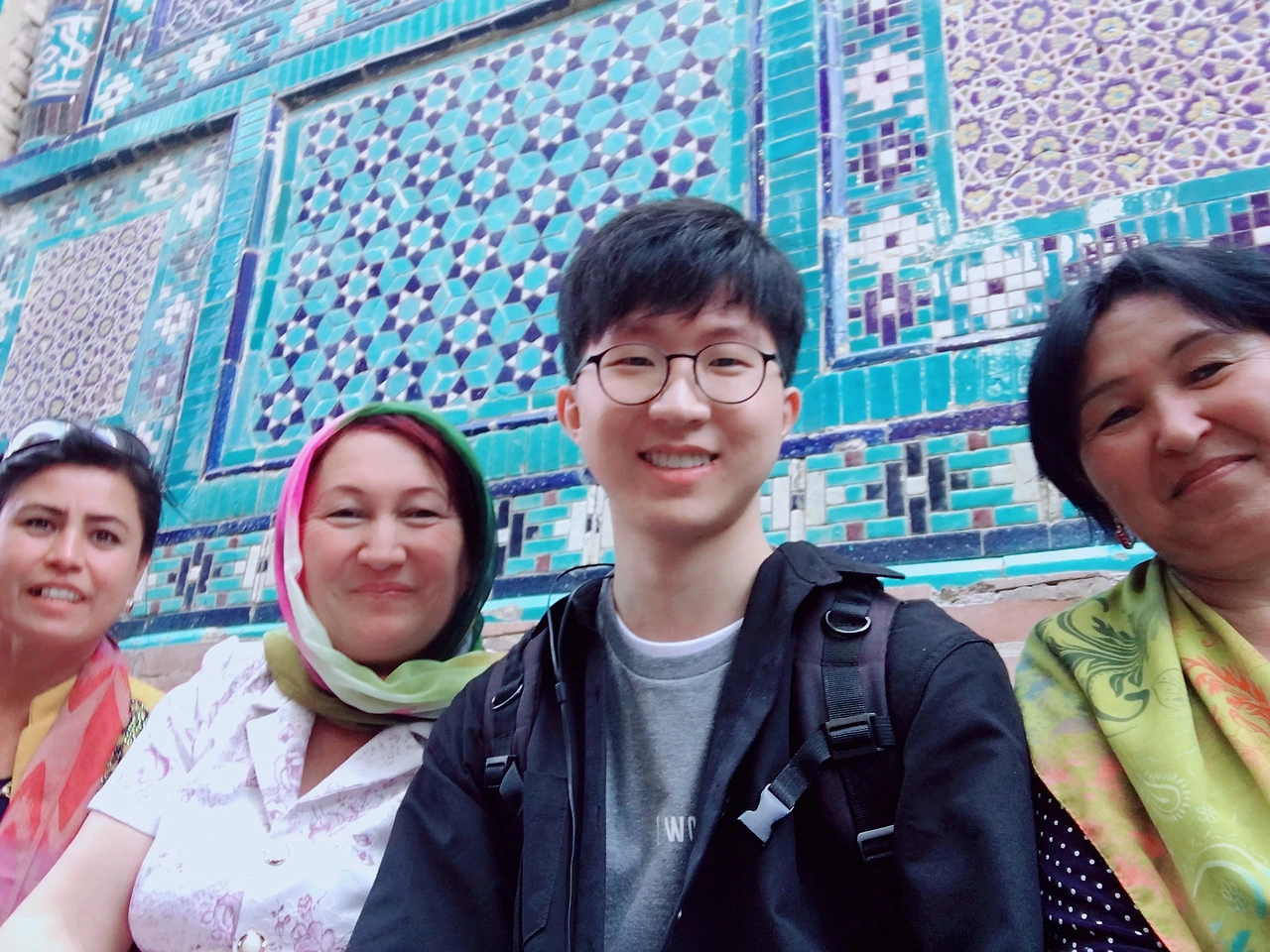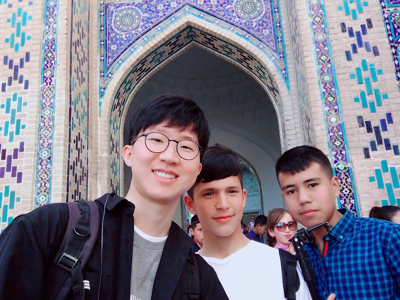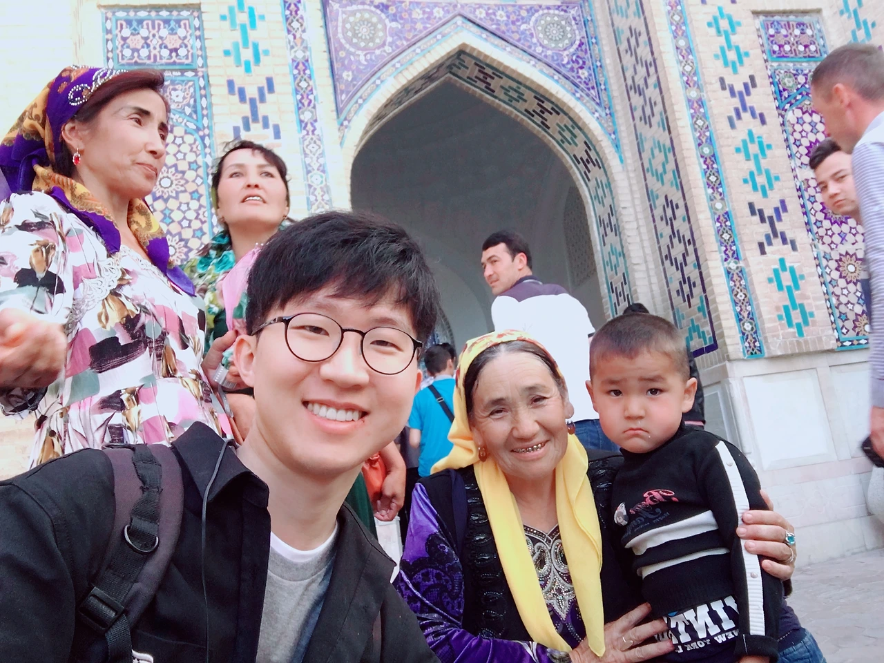 그렇게 광장에 혼자서 또 셀카를 열심히 찍는데, 한 우즈벡 여성이 나에게 사진을 찍어주겠다고 다가왔다. 그래서 흔쾌히 감사합니다~ 하고 사진을 찍었고, 그리고나서 나 혼자 또 다시 찍는데 그 여성이 다시 나에게 돌아와서 셀카 같이 찍자고 했다. 오 이건 뭐지 신기하다 그러면서 같이 셀카를 찍었다. 그리고 그녀는 총총총 사라졌다.