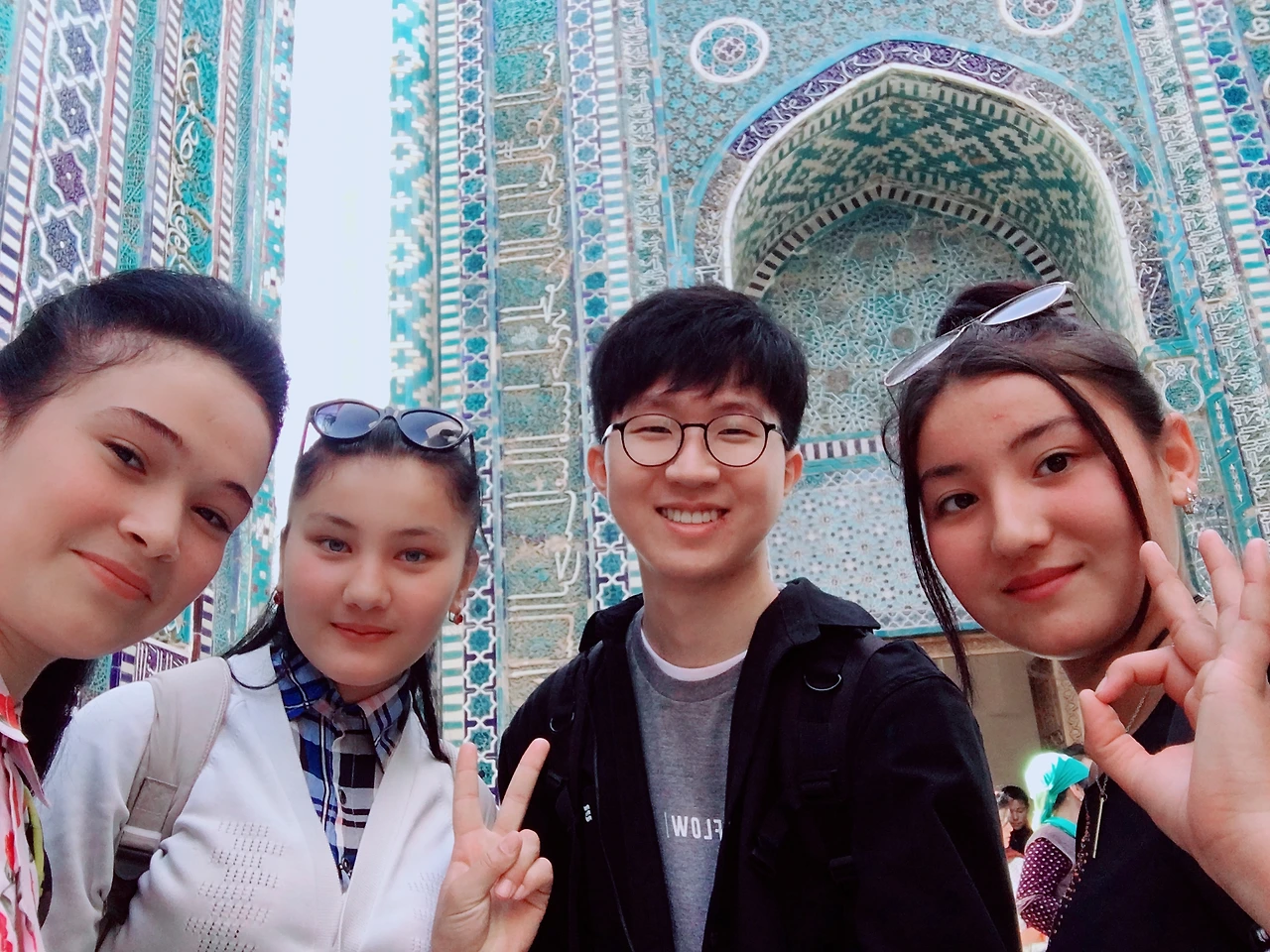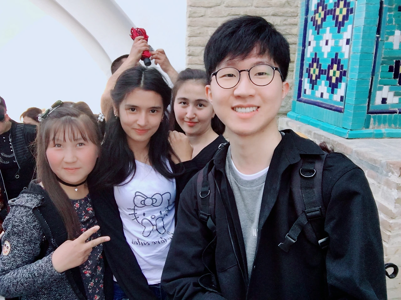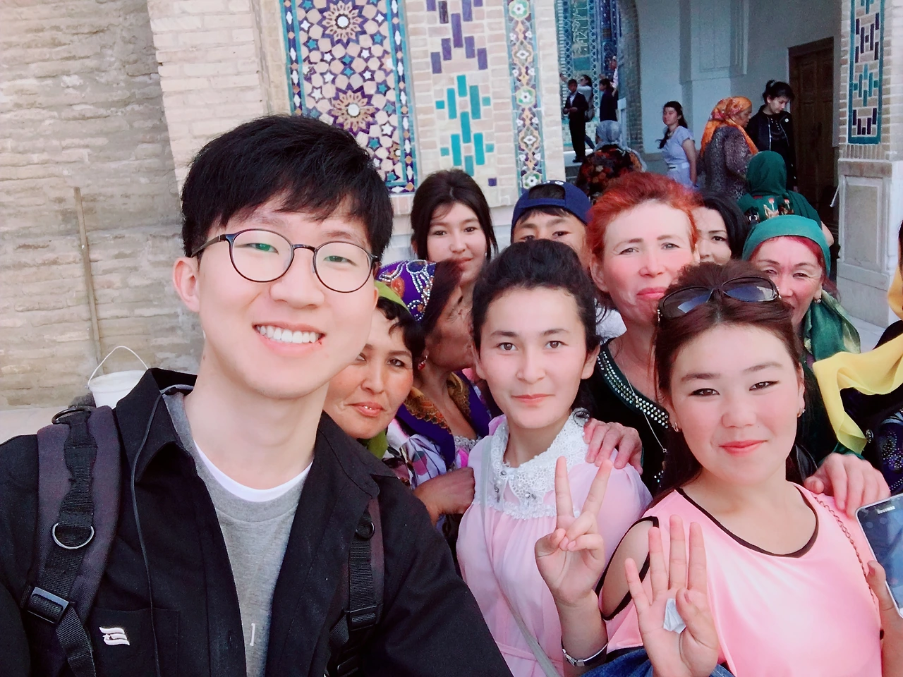 그렇게 광장에 혼자서 또 셀카를 열심히 찍는데, 한 우즈벡 여성이 나에게 사진을 찍어주겠다고 다가왔다. 그래서 흔쾌히 감사합니다~ 하고 사진을 찍었고, 그리고나서 나 혼자 또 다시 찍는데 그 여성이 다시 나에게 돌아와서 셀카 같이 찍자고 했다. 오 이건 뭐지 신기하다 그러면서 같이 셀카를 찍었다. 그리고 그녀는 총총총 사라졌다.