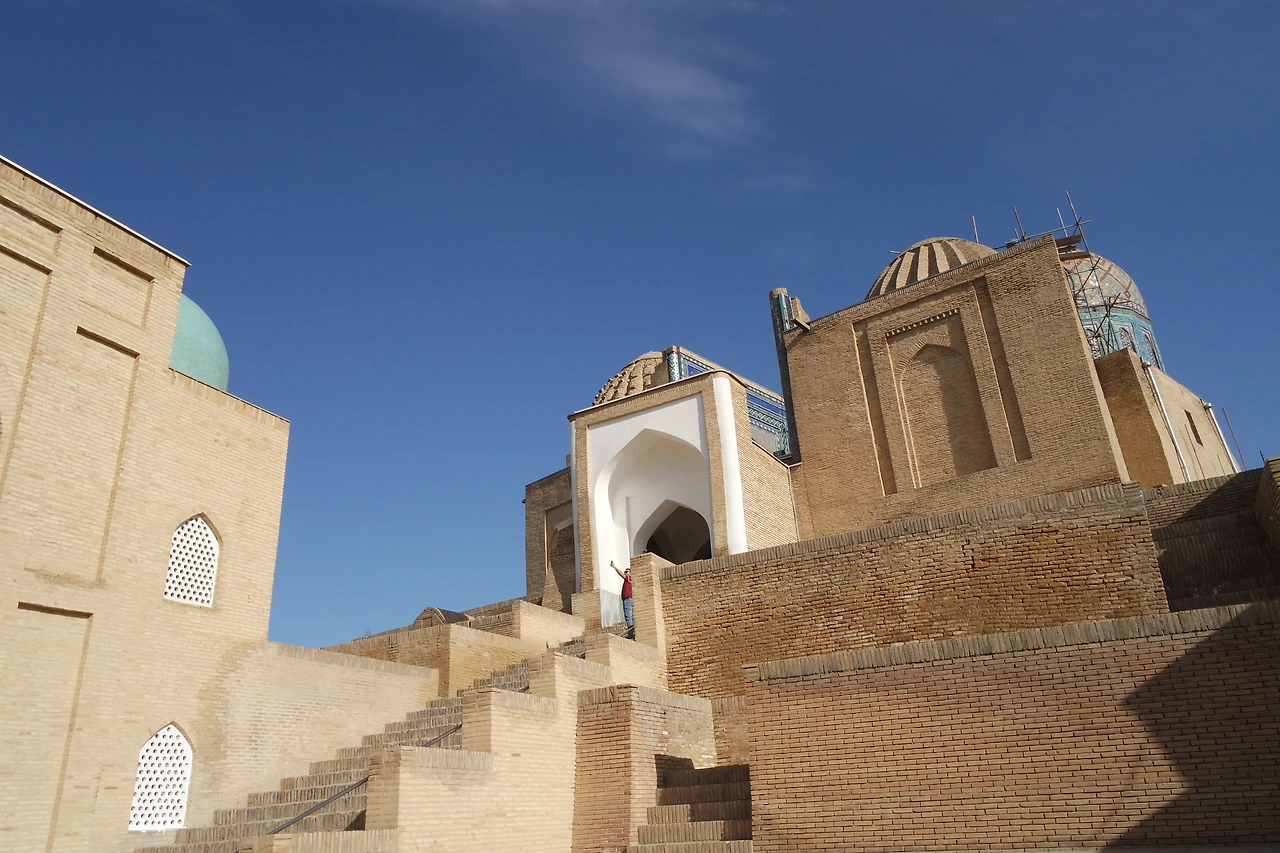 쭉 걷다가 또 묘소 비슷한게 나왔다. 그다지 눈길을 끌 정도로 잘 빠진 것은 아니었어서 관심 끄고 가려다가 아쉬워서 슬쩍 가까이 다가가봤다. 내부에 관이 여러개 있는 걸 보니 가족이 묻혀있는 것 같았다. 뒤를 돌아보니 구르 에미르가 보였고, 둘은 마주보고 있었다.