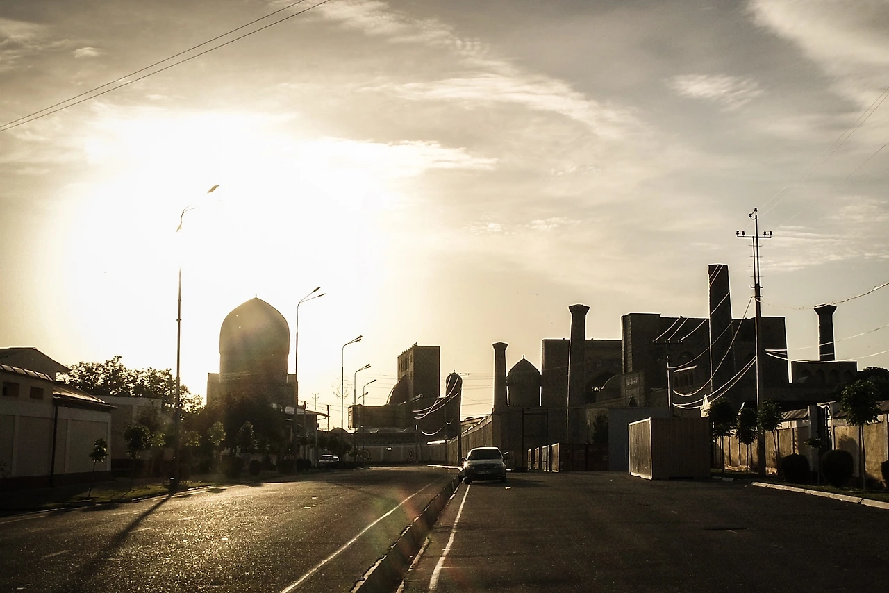 쭉 걷다가 느낌이 이상해지던 찰나, 지도를 봤는데 역시나 잘못된 길로 들어서고 있었다. 방향을 꺾고 바로 골목으로 들어가자, 햇살을 등진 레기스탄 광장의 건물 실루엣이 무슨 알라딘의 메트로폴리스처럼 빛나고 있었다. 마치 신기루에 홀린 것처럼 그 실루엣을 향해 계속 걸었다.