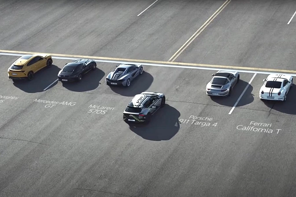 기아는 성능에 대한 부분을 EV6 공개 영상에서도 적극 활용했었다. 가장 돋보였던 부분이 바로 EV6 GT와 람보르기니 우루스, 벤츠 AMG GT, 맥라렌 570S, 포르쉐 911 타르가 4, 페라리 캘리포니아 T와 같은 해외 유명 스포츠카들과 펼친 드래그 레이싱이다.