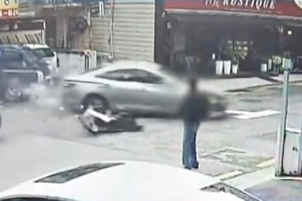 지난 4월 30일, 한 승용차가 빠른 속도로 골목에서 질주하는 것이 CCTV에 담겼다. 이 승용차는 주차되어 있는 오토바이를 잇따라 친 뒤 맞은편 건물로 돌진해버렸다. 당시 길에 서있었던 행인은 부서진 오토바이를 겨우 피했다.