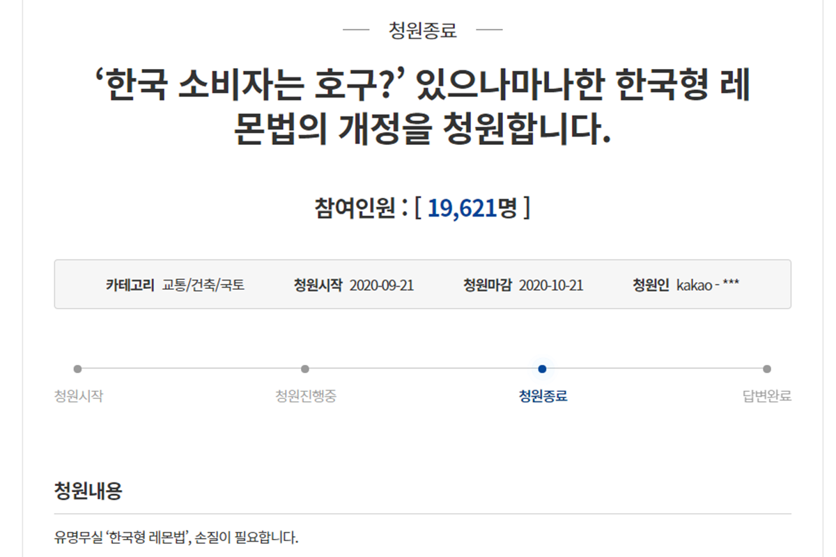 또한 심의 위원회의 중재가 종결되었다 하더라도 어떤 제품의 어떤 하자 때문에 어떻게 배상이 진행되었는지의 상세 여부는 공개되지 않는다. 상황이 이렇다 보니 실제로 레몬법이 갖고 있는 실효성에 대한 지적이 이어지며 법을 개정해야 한다는 주장이 나오고 있는 것이다.