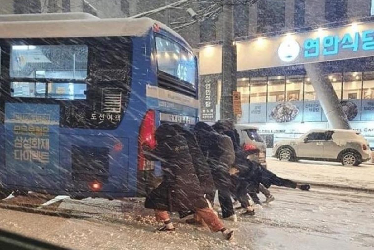 대중교통인 버스도 마찬가지였다. 난관에 빠진 버스를 구하기 위해 많은 시민들이 버스 뒤를 미는 장면까지 등장할 정도다. 또한 사고 현장을 수습하러 오던 견인차까지 미끄러지는 상황까지 발생하여 도로 위는 한마디로 난장판이 되고 말았다.