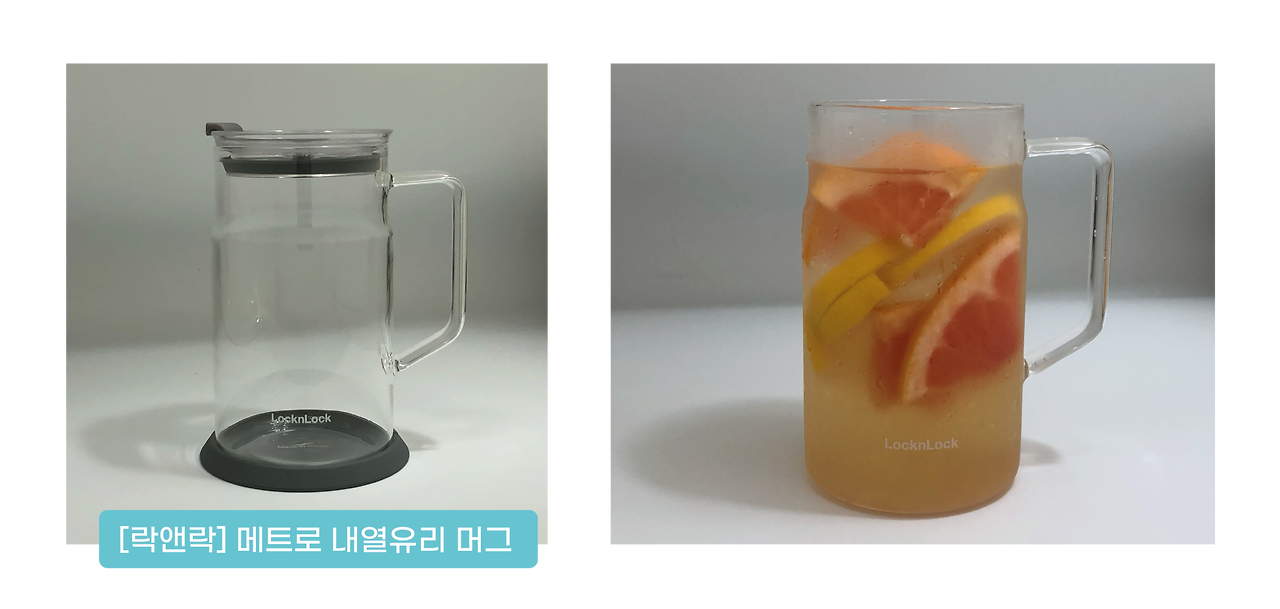 머그잔 + 뚜껑 + 실리콘 컵받침 세트로 구성된 제품입니다. 비교적 저렴한 가격에 깔끔한 디자인, 넉넉한 구성까지 가성비 갑 제품입니다. 넉넉한 용량에 뚜껑까지 있어, 물 주전자로도 활용 가능해요. 콜드브루, 또는 차를 우리기에도 안성맞춤입니다. 용량은 670mL, 560mL, 두 가지입니다. 제가 구매한 670mL는 꽤 큰 편이라서, 잔으로 사용하실 분은 560mL로 구매하시는 것을 추천해요.