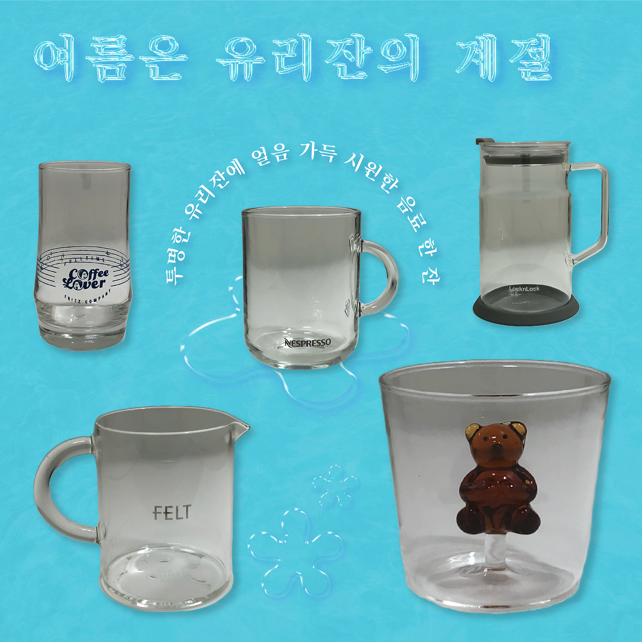 여름날에는 시원한 음료를 자주 마시게 되죠. 음료만큼이나 자주 만나게 되는 것은 바로 유리잔입니다. 물방울이 송골송골 맺힌 유리잔, 그 너머로 투명하게 비치는 얼음과 음료. 이 장면 만으로도 여름이 느껴지는 듯합니다. 저에게 여름은 유리잔의 계절 같습니다. 여름이 되면 찬장에서 지난여름 모아놓은 유리잔을 꺼내고, 새로운 유리잔들을 들이기 시작합니다. 찬 음료는 무조건 유리잔에 담아야 하거든요. 물방울이 똑똑 흐르는 투명한 유리잔에 마셔야 더 시원한 것 같달까요. 그래서 오늘은 여름에 쓰기 좋은 유리잔 5가지를 소개하고자 합니다. 모두 제가 직접 구매하고 사용한 제품들이에요. 올여름, 음료뿐만 아니라 일상에도 청량함을 더해줄 유리잔들을 소개합니다.