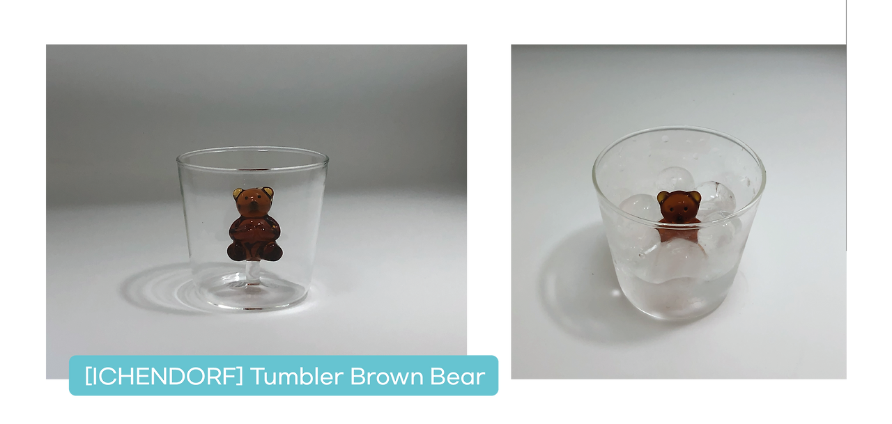 이첸도르프는 이탈리아의 글라스웨어 브랜드로, 투명한 잔 한가운데 아기자기한 유리공예가 들어있는 디자인으로 잘 알려져 있습니다. 이 제품은 '애니멀팜' 라인으로, 귀여운 유리곰이 잔 속에 앉아있습니다.
