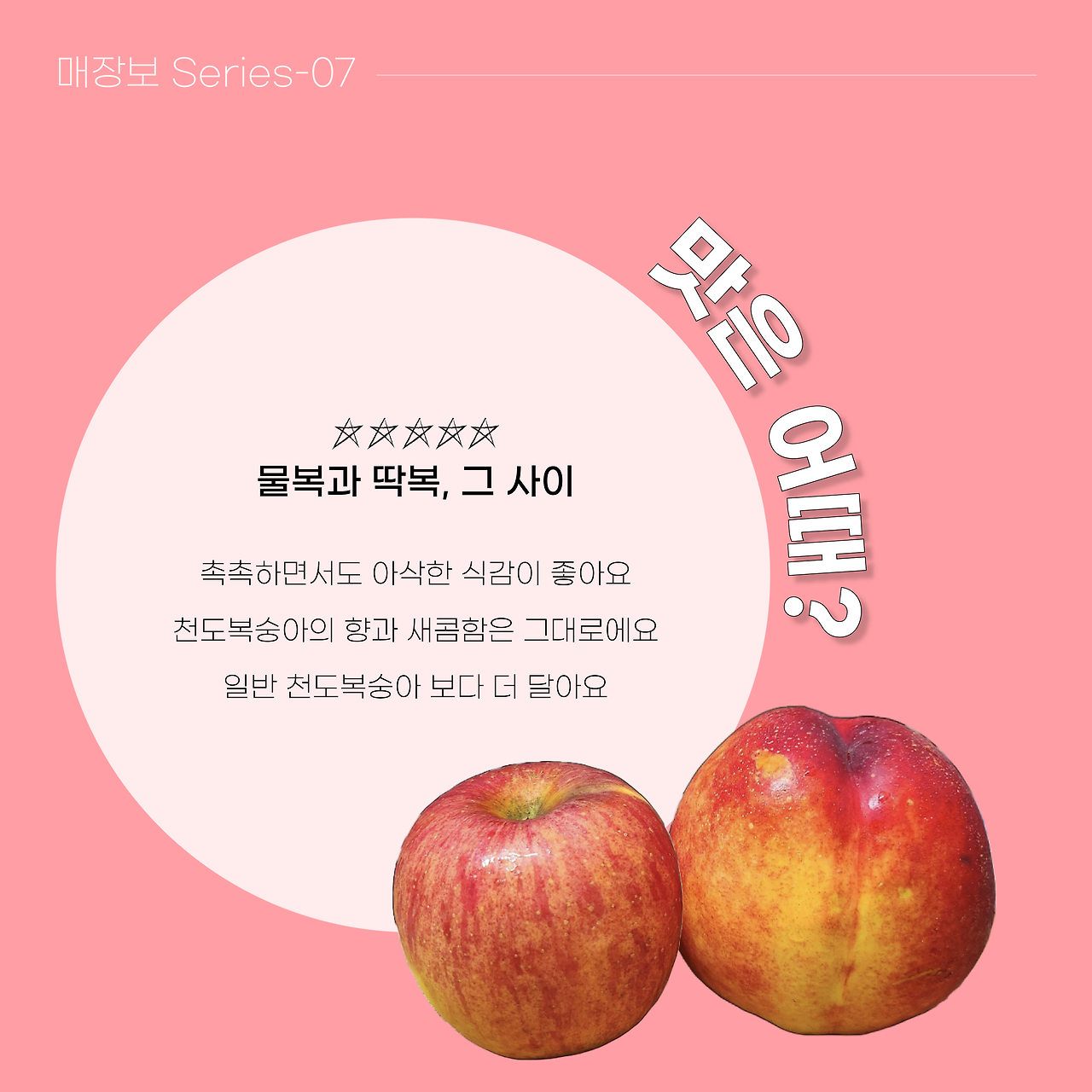 물복과 딱복의 매력을 모두 갖춘 이 녀석. 올여름 자주 찾을 것 같습니다. 온 가족이 모두 맛있게 먹었어요. 다들 한 입 먹자마자 "오 이거 맛있다!"를 외쳤을 정도입니다. 복숭아 좋아하시는 분들. 또는 물복과 딱복 그 사이에서 고민 중이신 분들에게 강력 추천합니다.