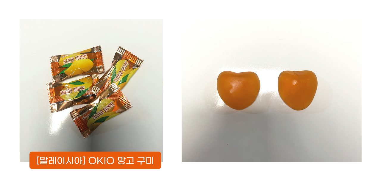 말레이시아의 제과 브랜드 코쿤의 제품입니다. 코쿤은 1993년 설립된 말레이시아 최대의 푸딩 제조업체이며, 사탕, 젤리, 나타드 코코가 들어간 푸딩 등 다양한 캔디류 제품을 판매하고 있습니다. 코쿤에서 제조한 오키오 젤리는 천 원 대의 가격에 개별 포장된 젤리가 16-18개 들어있는 제품으로. 가성비 좋은 젤리로 아주 유명한 제품입니다. 포도, 딸기, 파인애플 등 다양한 제품이 있는데요, 저는 망고 맛을 구매했어요.