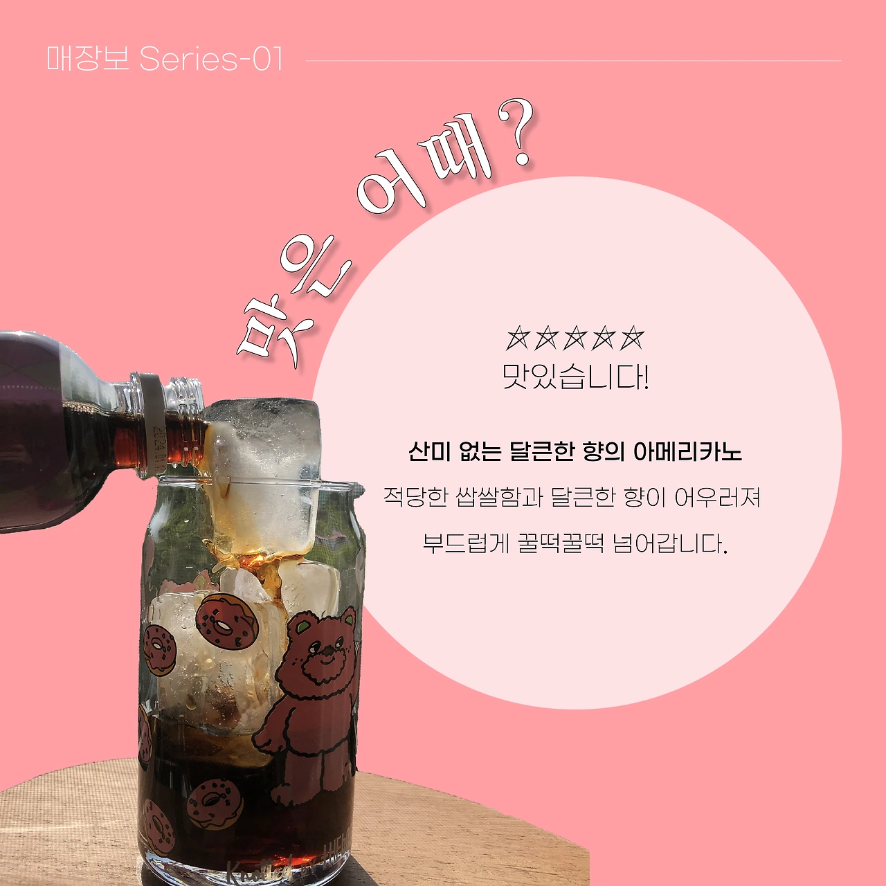 결론부터 말씀드리면, 맛있었습니다. 산미 없는 달큰한 향의 아메리카노였습니다. 부담스럽지 않은 쌉쌀한 맛과 달큰한 향이 어우러져 부드럽게 꿀떡꿀떡 넘어갔습니다.