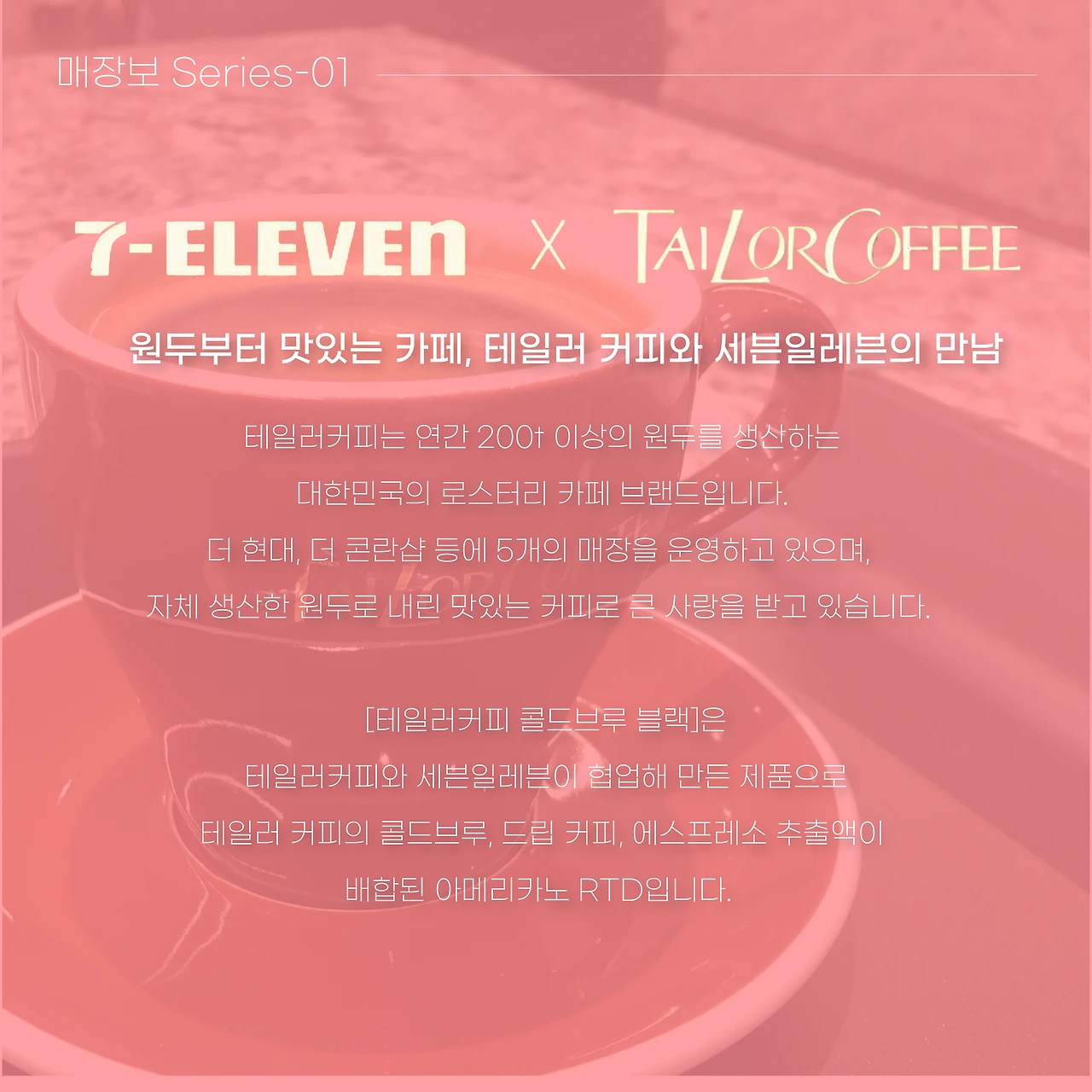 테일러 커피의 명성에 걸맞은 맛있는 RTD 커피를 맛보게 되어 행복했습니다. 감사해요. 세븐일레븐!