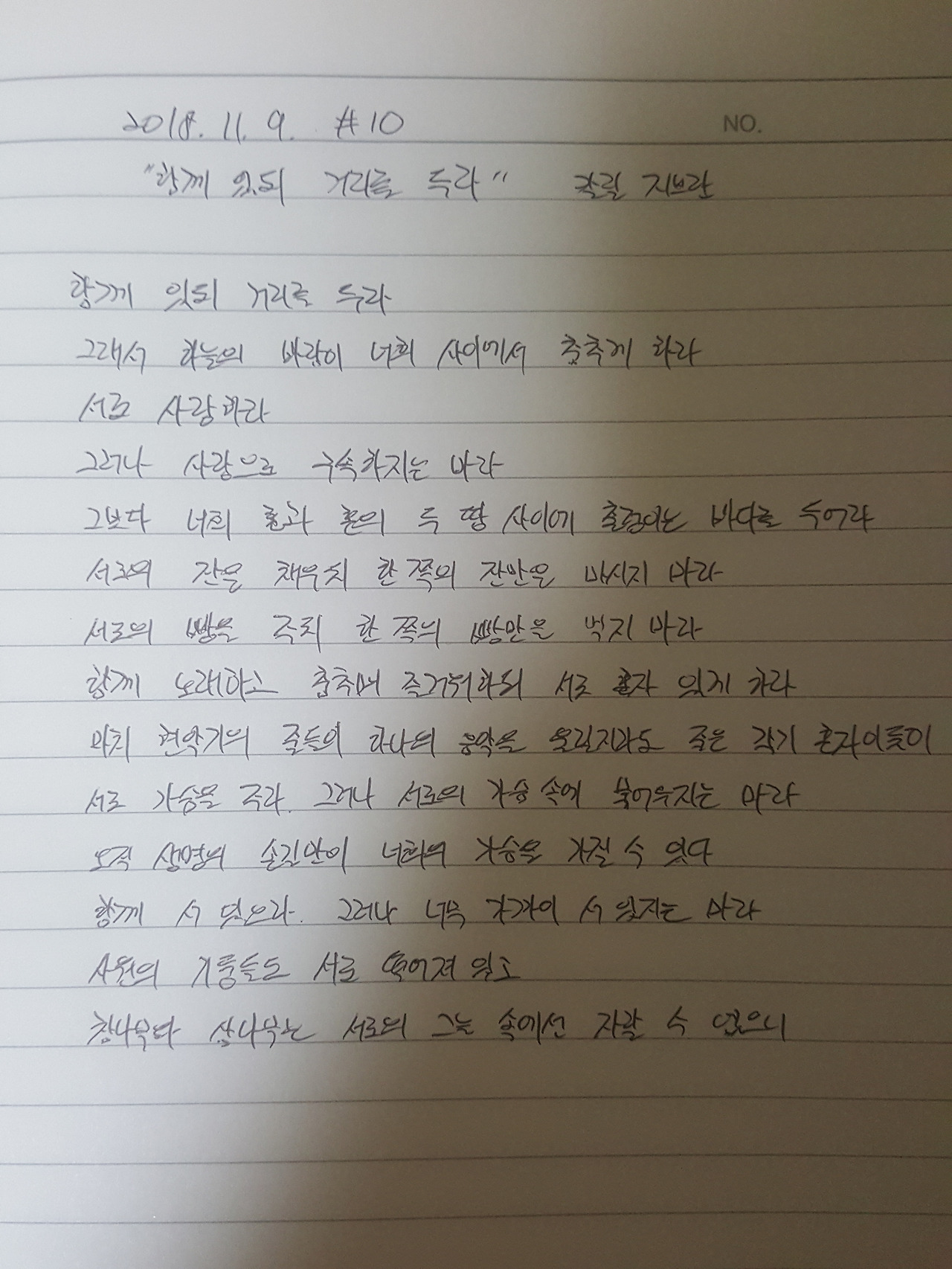 함께 노래하고 춤추며 즐거워하되 서로 혼자 있게 하라.