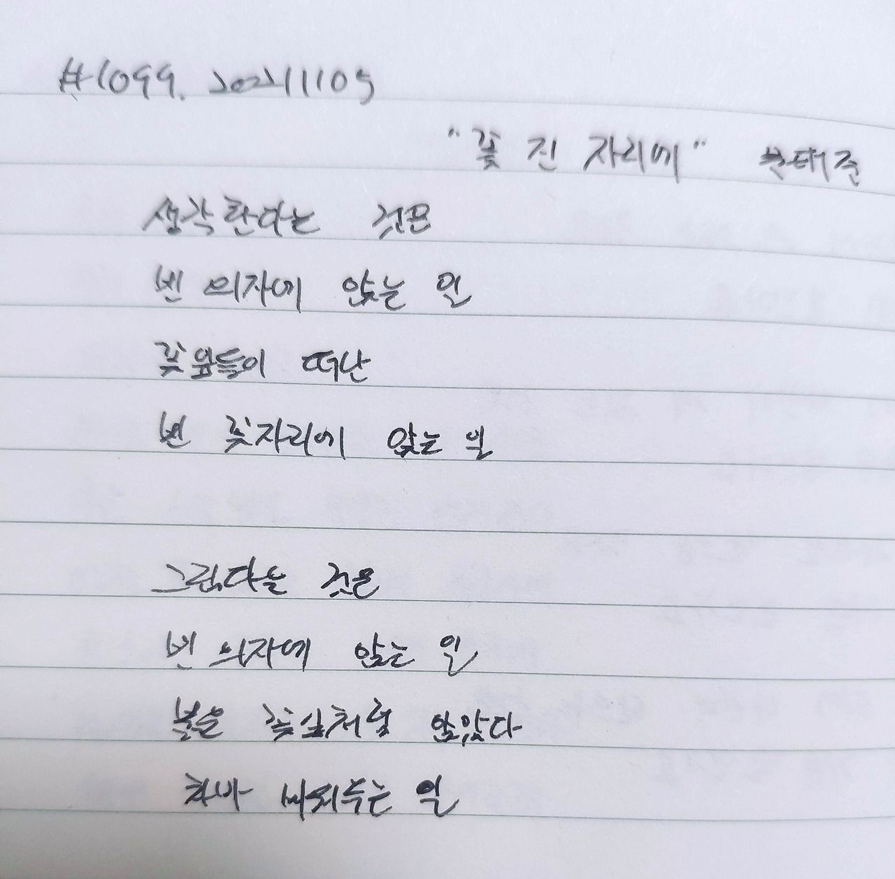 #1099. 211105. 꽃 진 자리에 - 문태준