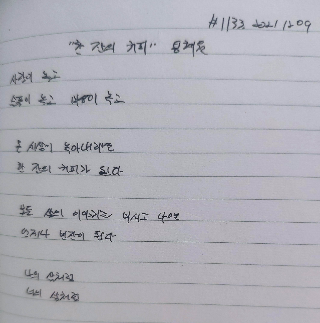 #1133. 211209. 한 잔의 커피 - 용혜원