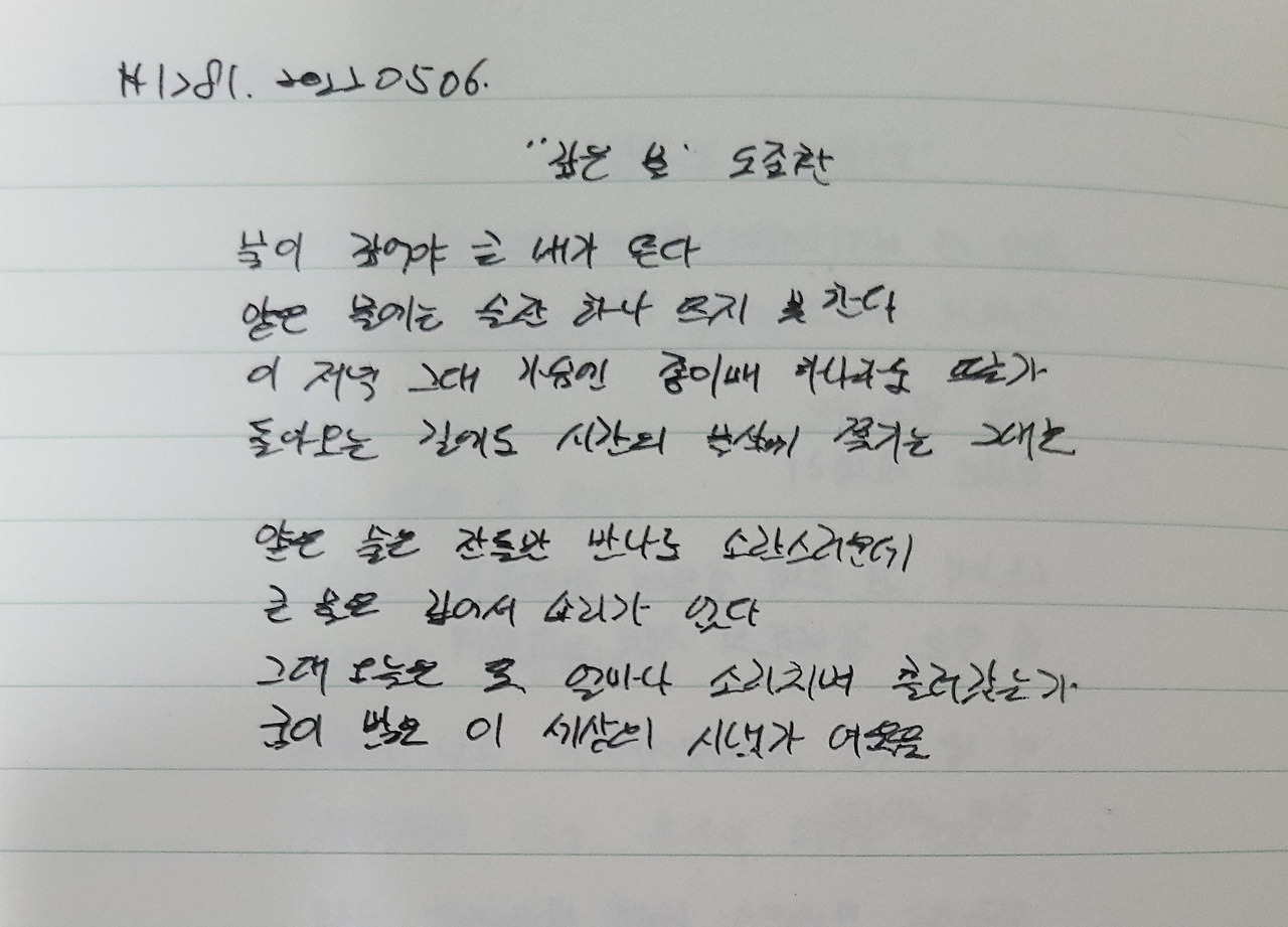 그대 오늘은 또 얼마나 소리치며 흘러갔는가